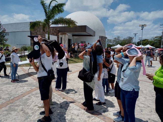 La red de planetarios del Consejo Quintanarroense de Humanidades, Ciencia y Tecnología tuvo llenos totales en sus auditorios durante el eclipse solar que ocurrido este lunes 8 de abril, con un aforo general de más de 4 mil personas que participaron en la observación directa con el uso de lentes certificados ISO 12312-2 y telescopios con filtros solares, así como de manera indirecta a través de la transmisión desde Torreón, Coahuila.