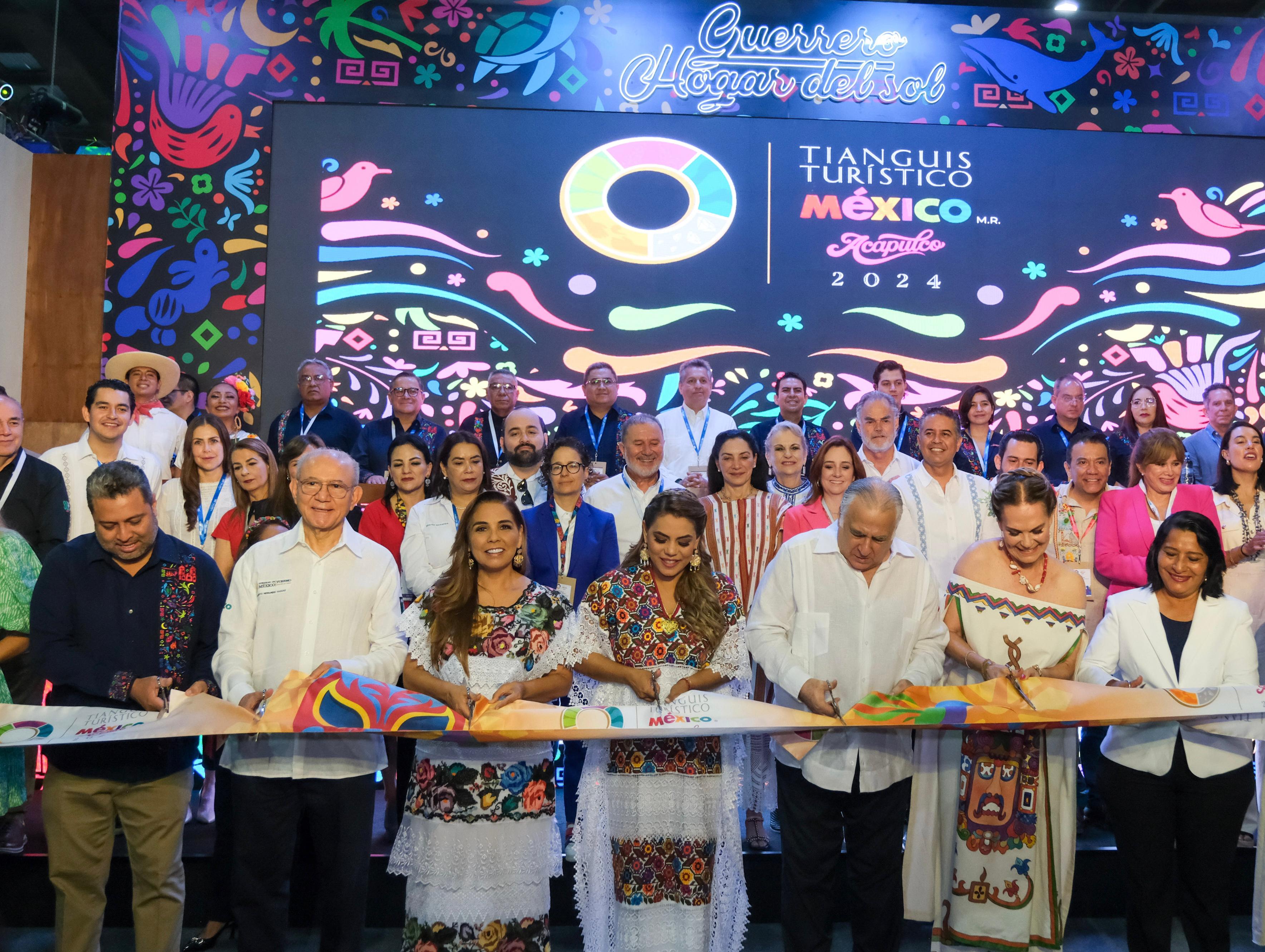 Con la presencia de la gobernadora Mara Lezama Espinosa al frente de la delegación de Quintana Roo, el secretario de Turismo del Gobierno de México, Miguel Torruco Marqués, y la gobernadora de Guerrero, Evelyn Cesia Salgado Pineda, participaron en el corte del listón inaugural del pabellón del Caribe Mexicano en la 48 edición del Tianguis Turístico en este puerto.