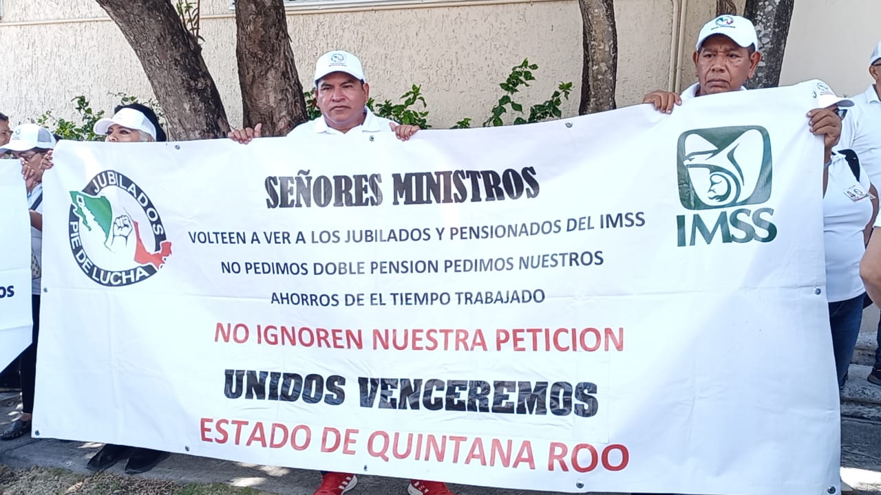 Un grupo de jubilados del Instituto Mexicano del Seguro Social (IMSS) se manifestó este miércoles frente a la Casa de la Cultura Jurídica de Cancún para denunciar y exigir al gobierno federal que les regresen sus ahorros del rubro de vejez y cesantía avanzada.