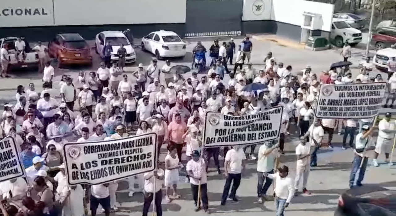 Ejidatarios de Playa del Carmen se manifestaron frente a la Fiscalía General de Quintana Roo para exigir freno a las invasiones de sus tierras, mientras que los invasores aseguran que han sido agredidos en los intentos por desalojarlos.