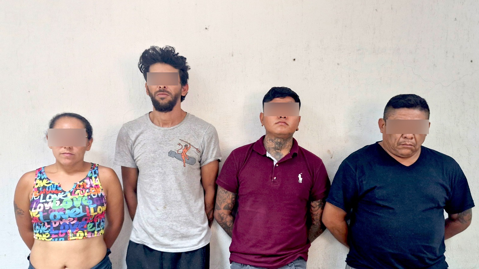 Estas personas, a quienes se les aseguraron diversas dosis de posibles estupefacientes en el municipio Othón P. Blanco, son señaladas como las responsables de al menos tres crímenes, entre ellos el ocurrido este 24 de abril en el fraccionamiento Flamingos, en Chetumal, donde perdió la vida un adolescente y resultó lesionado un elemento de la policía municipal, que era su padre.