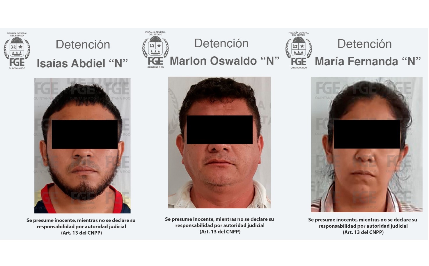 Tras labores de investigación tecnológica y de campo, la Fiscalía General del Estado (FGE) de Quintana Roo logró detener a dos hombres y una mujer por su posible relación en hechos que podrían ser constitutivos del delito de homicidio calificado en agravio de Manuel Santiago Tun, quien fue ultimado la madrugada del 11 de mayo del año en curso en el municipio Benito Juárez.