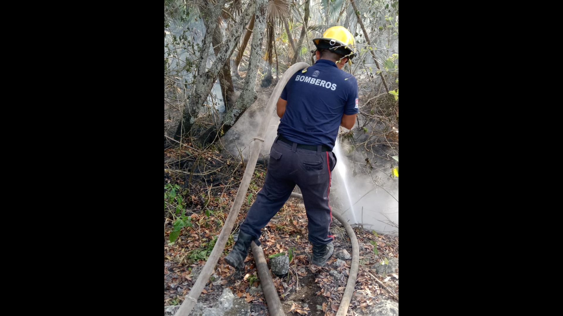En esta recta final de la temporada de incendios forestales, elementos del Cuerpo de Bomberos se encuentran trabajando en la mitigación de un siniestro que se formó hace unos días cerca del fraccionamiento Aldea Tulum, ubicado al sur de la cabecera municipal.