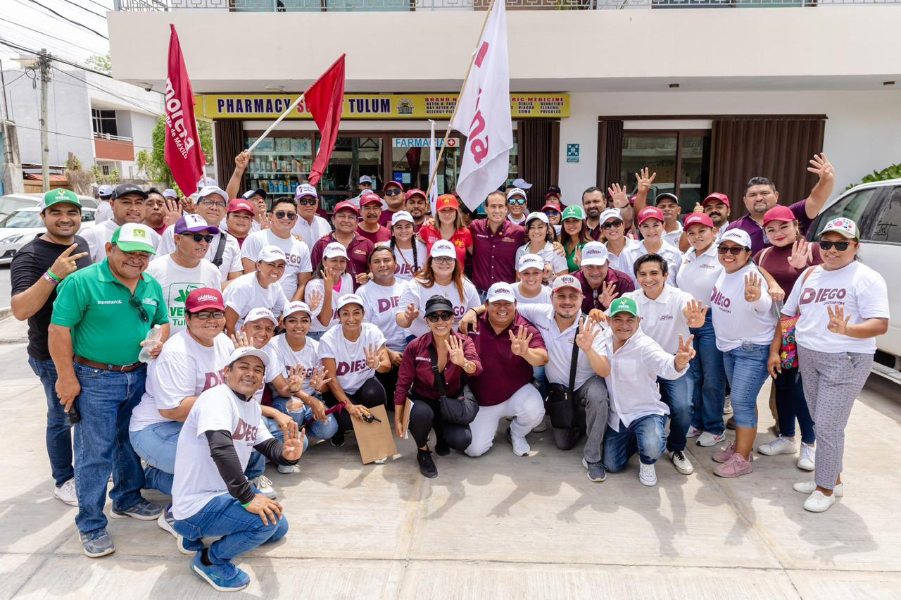Gratificante respaldo ciudadano recibió el candidato de Morena a la presidencia municipal de Tulum, Diego Castañón Trejo, al visitar la colonia Maya, a los artesanos de la zona arqueológica y la comunidad de Akumal.