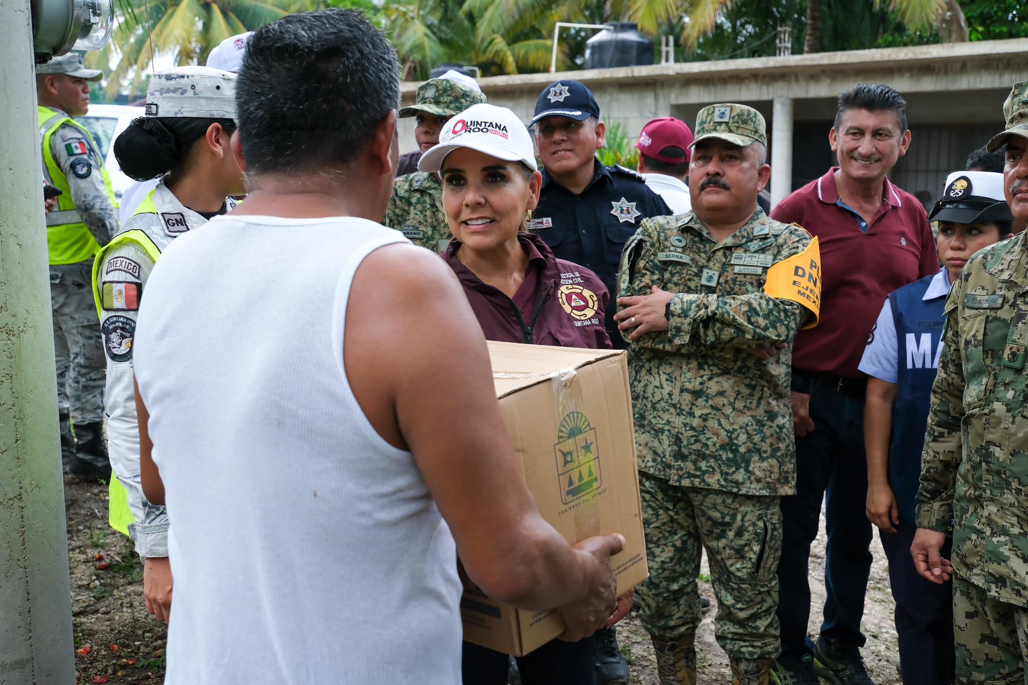 “Seguimos en recorridos con todos los equipos de emergencia de los tres órdenes de gobierno, para atender a las familias afectadas por las inundaciones. Continuamos entregando paquetes alimentarios y seguiremos distribuyendo la ayuda a quienes más lo necesiten para no dejar a nadie atrás”, dijo Mara Lezama.