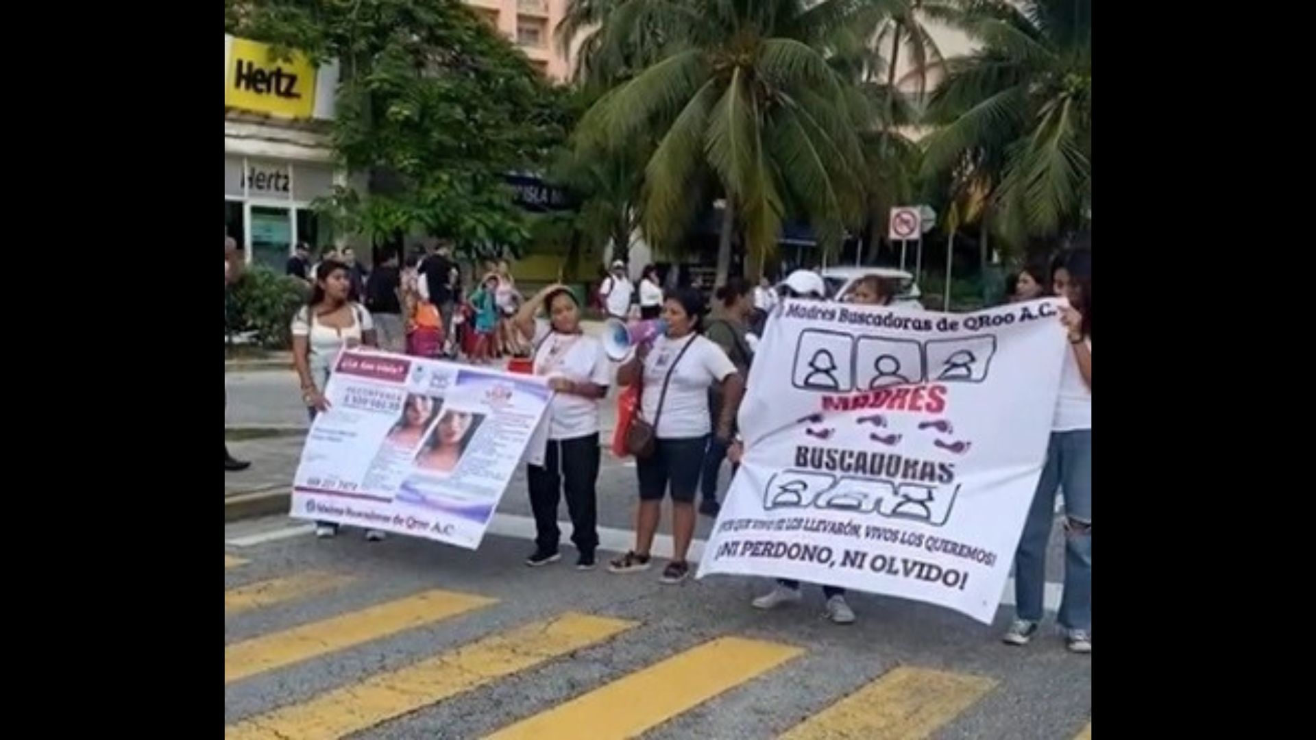 Alrededor de las 17 horas, y tras una jornada infructuosa de búsqueda en las zonas donde aún hay selva, en Cancún, las mujeres llegaron al corazón de la zona hotelera de Cancún, también conocido como la zona de discos, en donde bloquearon los dos carriles en dirección a la ciudad.