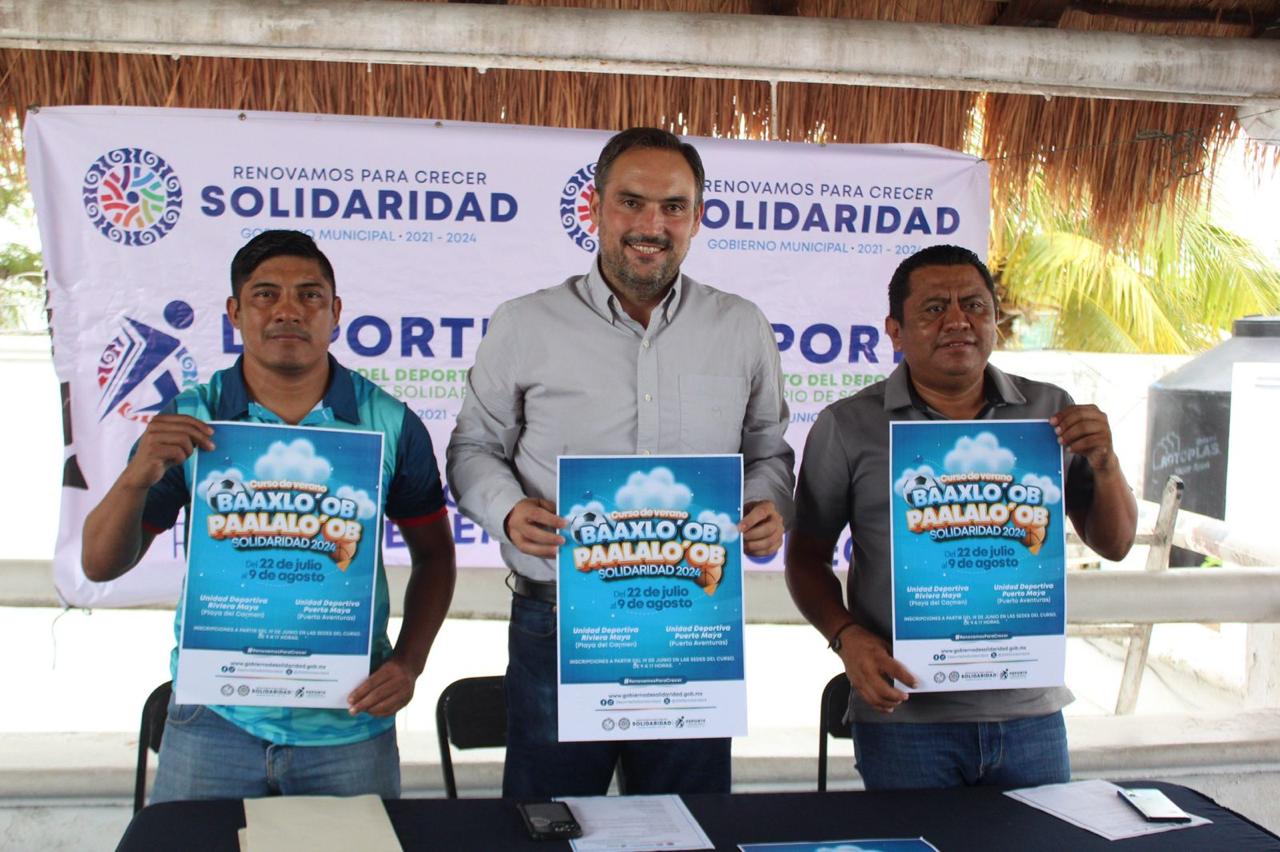 La alegría y la diversión para los pequeños llegará con el curso de verano Baaxlo’ob Paalalo’ob Solidaridad 2024, se anunció en rueda de prensa que encabezó Amador Gutiérrez Guigui, director general del Instituto del Deporte del Municipio (IDM) de Solidaridad y que tuvo como sede la palapa de la unidad deportiva Mario Villanueva.