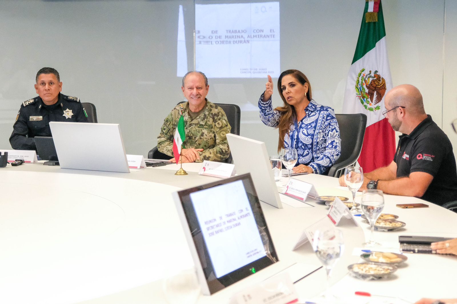 El almirante Ojeda Durán y la gobernadora Mara Lezama trabajaron en las instalaciones del complejo de seguridad C5, en donde se reiteró que México es el único país donde los tres niveles de gobierno trabajan de manera coordinada, gobierno del estado, la Secretaría de Marina y el Gobierno de México.