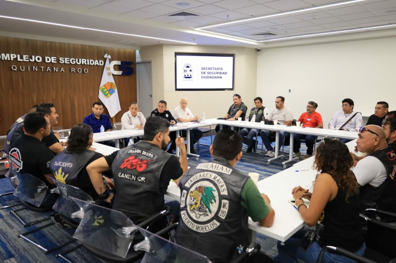 Una comitiva de motociclistas se reunió este jueves en el C5 con varias autoridades de Quintana Roo, con quienes acordaron tomar en cuenta la postura de todos los involucrados y tener una segunda mesa de trabajo, el próximo viernes 9 de agosto, para evaluar los elementos que faciliten la elaboración de un reglamento equilibrado para la llamada “Ley Chaleco”.