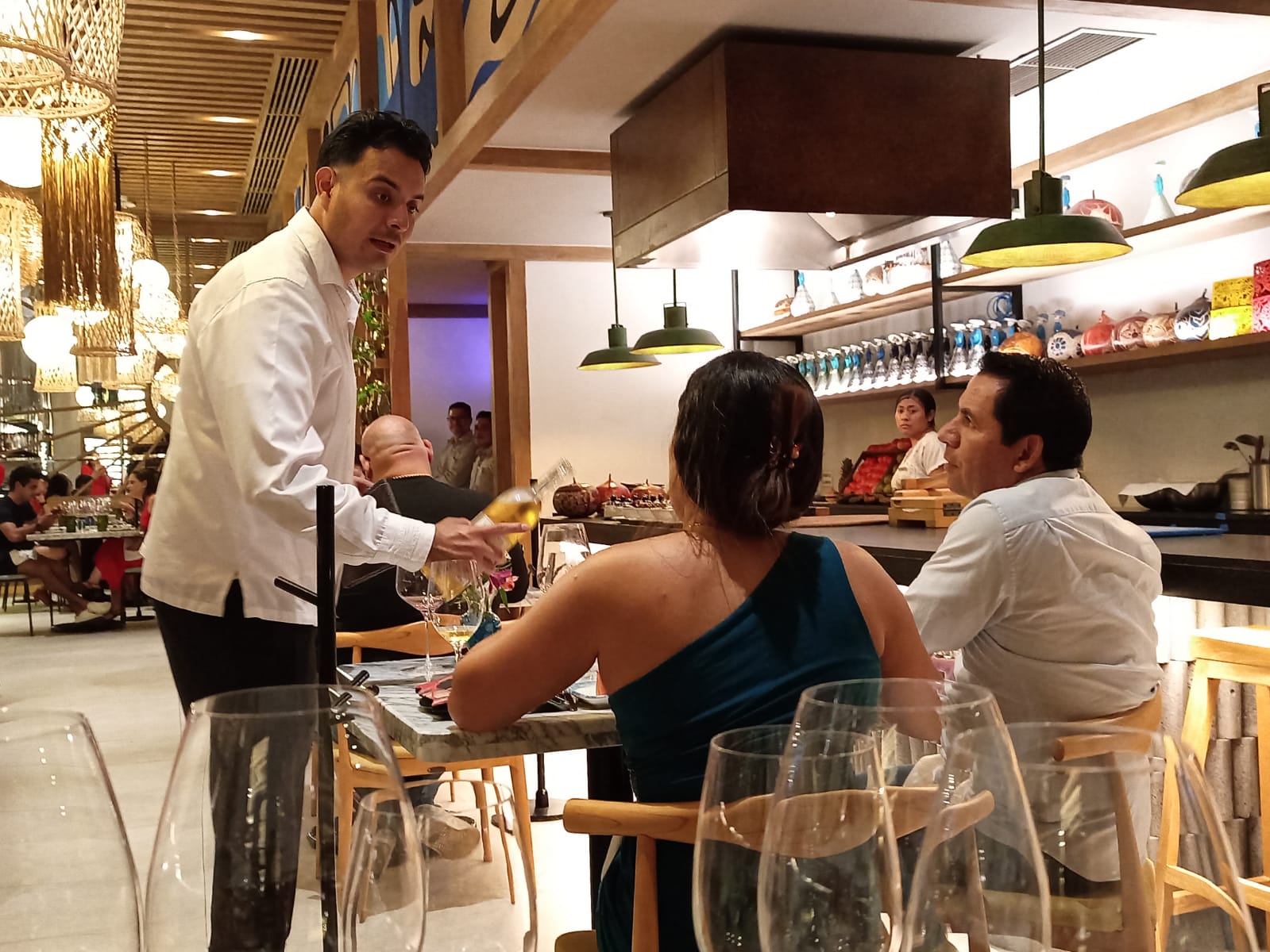 La cena donde los invitados pudieron disfrutar del vino tinto L.A. Cetto se realizó en el restaurante Litoral, de Puerto Cancún. La reserva privada Nebbiolo 2019 estuvo acompañada de un taco gobernador, la 2012 de un filete con camarón enchipotlado y la 2005 de un pulpo en su tinta, cerrando con un postre chocobelga acompañado de un vino Generoso L.A. Cetto.