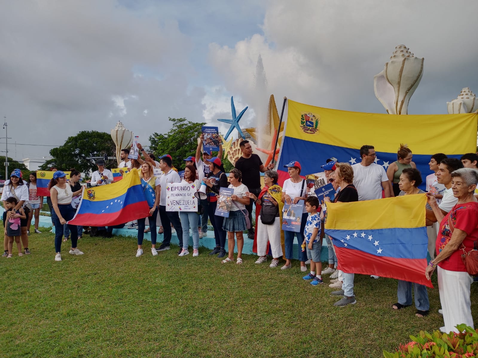 "Es nuestra segunda protesta y seguiremos en la calle hasta que caiga la dictadura de Nicolás Maduro. Seguimos con opresión, a nuestros familiares les están quitando todo, los ven en la calle, les quitan los teléfonos, se los rompen, ya no quieren absolutamente nada", expuso Marilyn Torres, originaria del país sudamericano y presidenta de las asociaciones Fundación CISVAC y de Casa Club Venezuela.