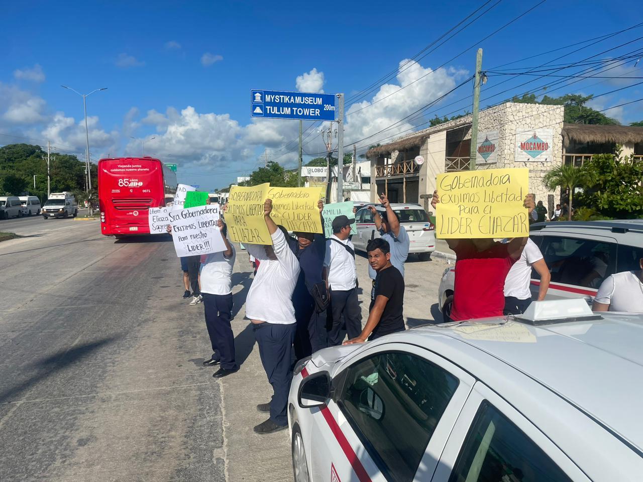 Desde las 8:30 horas los socios taxistas se concentraron en la entrada de la zona arqueológica de Tulum para expresar su inconformidad. Señalaron que continuarán sus protestas hasta que den la libertad a Sagrero, detenido por estar relacionado con una carpeta de investigación por los delitos de homicidio calificado en agravio de cuatro personas, de acuerdo a información de la Fiscalía General del Estado.