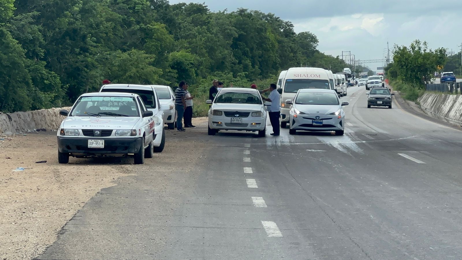 Ya pasada la una derivado de la rodada sobre la carretera federal 307 en la que participaron más de 400 integrantes del sindicato Tiburones del Caribe de Tulum, se registró un embotellamiento vial con varios kilómetros de filas de coches que tuvieron que circular a vuelta de rueda por más de cuatro horas.