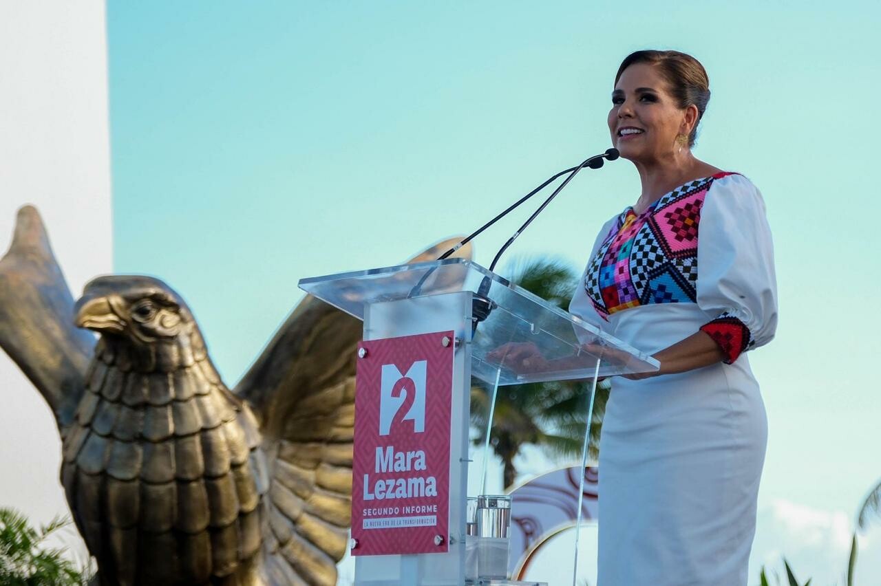 Al rendir su Segundo Informe de Gobierno frente al pueblo, la gobernadora de Quintana Roo, Mara Lezama Espinosa, aseguró que con el trabajo de todos y sumando esfuerzos en un nuevo acuerdo, en dos años “un gobierno humanista con corazón feminista ha sentado las bases de la transformación, una transformación que está en marcha y no tiene vuelta atrás”. Foto: Gobierno de Quintana Roo Previamente, en sesión solemne, la XVIII Legislatura del Estado recibió el Segundo Informe de la gobernadora Mara Lezama Espinosa, documento entregado por la secretaria de gobierno María Cristina Torres Gómez a la presidenta de la Mesa Directiva, Luz Gabriela Mora Castillo, para dar cumplimiento al mandato constitucional de informar sobre el estado que guarda la administración pública. Desde la explanada a La Bandera, frente al palacio de Gobierno, en Chetumal, Mara Lezama dio un mensaje en el que afirmó que se ha gobernado de manera diferente, trabajando en territorio, con grandes logros para enumerar, los cuales fueron acompañados de testimonios ciudadanos, como los de Julia Cahuich Puc y su hija Cristel, beneficiaria del programa de cardiopatía; Adriana Lozada, vecina de la colonia Colosio, de Playa del Carmen, que con su título de propiedad ya tiene certeza jurídica de su patrimonio o Gael Alejandro Peña Góngora, del programa de becas. Mara Lezama destinó palabras especiales para el presidente Andrés Manuel López Obrador, reconociendo su liderazgo firme y decidido en la construcción del primer piso, que continuará la presidenta electa Claudia Sheinbaum. Entre los invitados especiales se encontraban Layda Sansores, gobernadora de Campeche; Joaquín Díaz Mena, gobernador electo de Yucatán; Eduardo Ramírez, gobernador electo de Chiapas; Lorena Cuéllar, mandataria de Tlaxcala; y los gobernadores en funciones y electo de Tabasco, Carlos Manuel Merino y Javier May, respectivamente. La gobernadora dio a conocer que destinaron 3 mil 500 millones de pesos, la mayor inversión social en la historia del estado, para entregar 333 mil apoyos alimentarios, así como 365 mil apoyos económicos para atender y reducir el rezago alimentario y fortalecer el gasto en el hogar de más de 55 mil familias. En finanzas, la deuda a proveedores pasó de 7 mil 370 millones de pesos a 3 mil 230 millones al 30 de junio de este año, es decir, disminuyó en 4 mil 140 millones de pesos, casi 50 por ciento. Inversión en salud La gobernadora Mara Lezama destacó la inversión histórica de 410 mil millones de pesos para el programa de Caravanas Médicas Móviles, que ofreció 330 mil atenciones a población de comunidades alejadas y marginadas. Se destinaron casi 134 millones de pesos, en conjunto con el gobierno federal, para poner en marcha 61 ambulancias de alta tecnología en el estado. Foto: Gobierno de Quintana Roo Se destinaron más de 48 millones de pesos en el mantenimiento en las unidades médicas del estado, y se cambió la sede del Banco de Sangre Estatal al nuevo Centro Estatal de Transfusión Sanguínea. Gestionó con la federación la construcción del nuevo Hospital General de Chetumal, de 120 camas, con una inversión de casi mil 500 millones de pesos. Se inició la construcción del nuevo Hospital General de Felipe Carrillo Puerto, con una inversión de 815 millones de pesos; y se invirtieron casi 33 millones de pesos en el Hospital de Nicolás Bravo También inició la construcción para sustituir tres Centros de Salud en El Cedral y San Ángel, en Lázaro Cárdenas; y Puerto Arturo en José María Morelos, con una inversión total de 31 millones y medio de pesos. Otras obras de gran trascendencia son las dos salas de Hemodinamia, gestionadas con apoyo del gobierno federal, una en el Hospital Jesús Kumate Rodríguez de Cancún, ya inaugurada, con una inversión de 79 millones de pesos, y otra en construcción en el Hospital General de Chetumal, con una inversión de 75 millones de pesos. Nueva Era del Turismo en el Caribe Mexicano “Somos líderes de la región sur-sureste en materia de Inversión Extranjera Directa, con mil 21 millones de dólares. En 2023, recibimos más de 21 millones de turistas. Tuvimos más de 33.8 millones de pasajeros y pasajeras en los cuatro aeropuertos internacionales y seis millones de cruceristas en nuestros puertos, lo que generó una derrama económica superior a 20 mil 100 millones de dólares”, explicó. Mara Lezama citó los más de 200 mil millones de pesos en diversas obras, lo que constituye “la inversión federal más grande de la historia en nuestro estado”. La avenida Chac Mool y la rehabilitación del Boulevard Luis Donaldo Colosio con el cableado subterráneo, el Distribuidor Vial del Aeropuerto, y el Puente Nichupté, en Cancún; y el Parque Nacional del Jaguar y el extraordinario Aeropuerto Felipe Carrillo Puerto de Tulum. Lee: QRoo va por más visitantes en el Tianguis de Pueblos Mágicos de México En la zona sur están el Tianguis Comercial Yum Kaax y el Parque Quintana Roo, con una inversión de más de 300 millones de pesos. El Mercado del Bienestar Maya, en Nicolás Bravo, que incluye una inversión de más de 90 millones de pesos.“Y la esperada Puerta al Mar de Felipe Carrillo Puerto, que responde a un clamor histórico del pueblo carrilloportense”, indicó. Tenencia de la tierra Lee también: AMLO entrega escrituras a vecinos de la colonia Colosio de Playa del Carmen La gobernadora dijo que Quintana Roo es líder en creación de empleo formal; durante 10 meses ha estado en el primer lugar nacional en la tasa de variación que emite el Instituto Mexicano del Seguro Social, y el Servicio Estatal de Empleo ocupa el quinto mejor servicio del país en el ranking nacional. Con acciones como esta, y dándole impulso a las actividades económicas de Quintana Roo, por primera vez en más de 25 años se superó el medio millón de trabajadores asegurados al IMSS en el estado. Recursos para obra pública “En la zona norte, en Canc