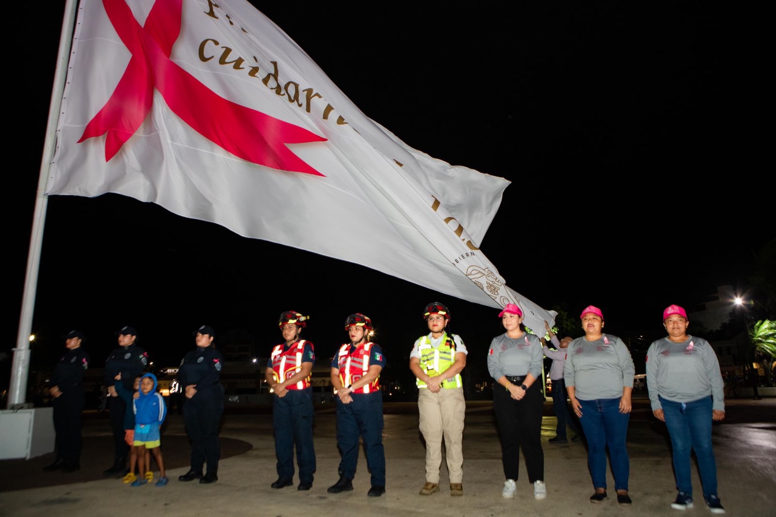 Además, en la plaza 28 de Julio se izó una monumental bandera blanca con un moño rosa y la frase “Prosperidad es cuidarnos todas”. La presidenta municipal resaltó que le llena de esperanza saber que, gracias a la detección temprana y los avances en los tratamientos, cada vez hay más mujeres que están venciendo esta enfermedad.