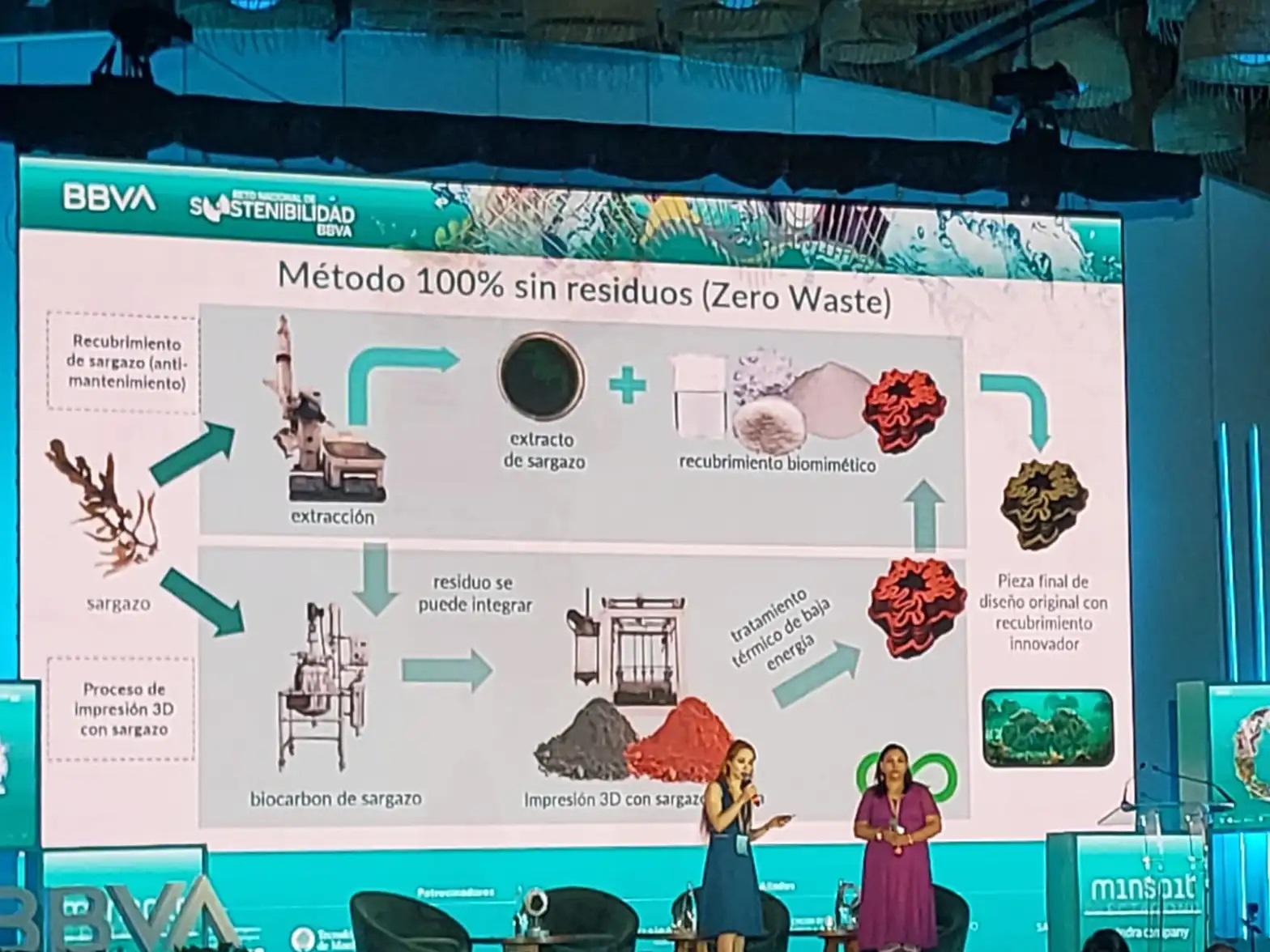Toni Chaves mencionó que este concurso, que lleva por nombre Primer Reto Nacional de Sostenibilidad BBVA, es una propuesta de la AHRM y en la cual llevan trabajando más de tres años y con el apoyo de la banca lanzaron una convocatoria en la que seleccionaron cuatro proyectos presentados por catedráticos e investigadores de instituciones como el Instituto Politécnico Nacional, el Tecnológico de Monterrey y la Universidad Nacional Autónoma de México, que dan solución al tema del excesivo arribo del alga.