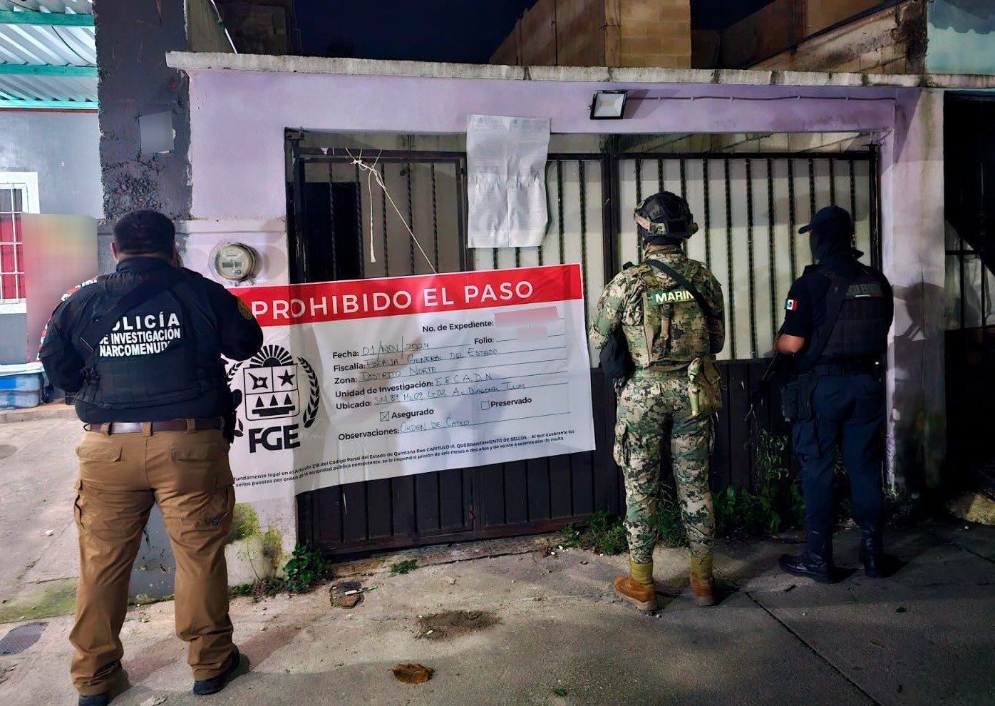 Las acciones continuaron en un inmueble localizado en avenida Chetumal, entre Río Hondo y Paseo de la Higuera de la supermanzana 227, donde encontraron vegetal verde y seco, así como sustancia color blanco con características de la cocaína.