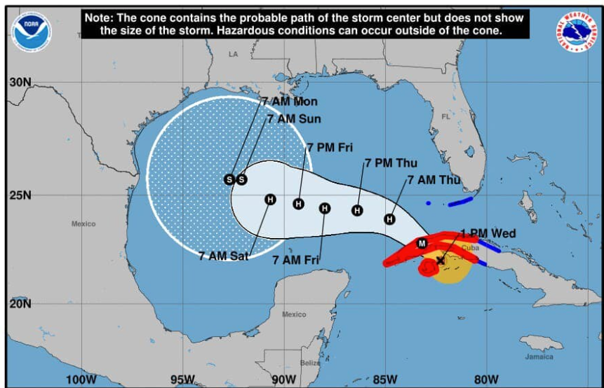 Hasta las 14 horas de este miércoles 6 de noviembre el ciclón está ubicado a 65 kilómetros al noreste de la Isla de la Juventud, Cuba, y a 475 kilómetros al este-noreste de Cancún, Quintana Roo.