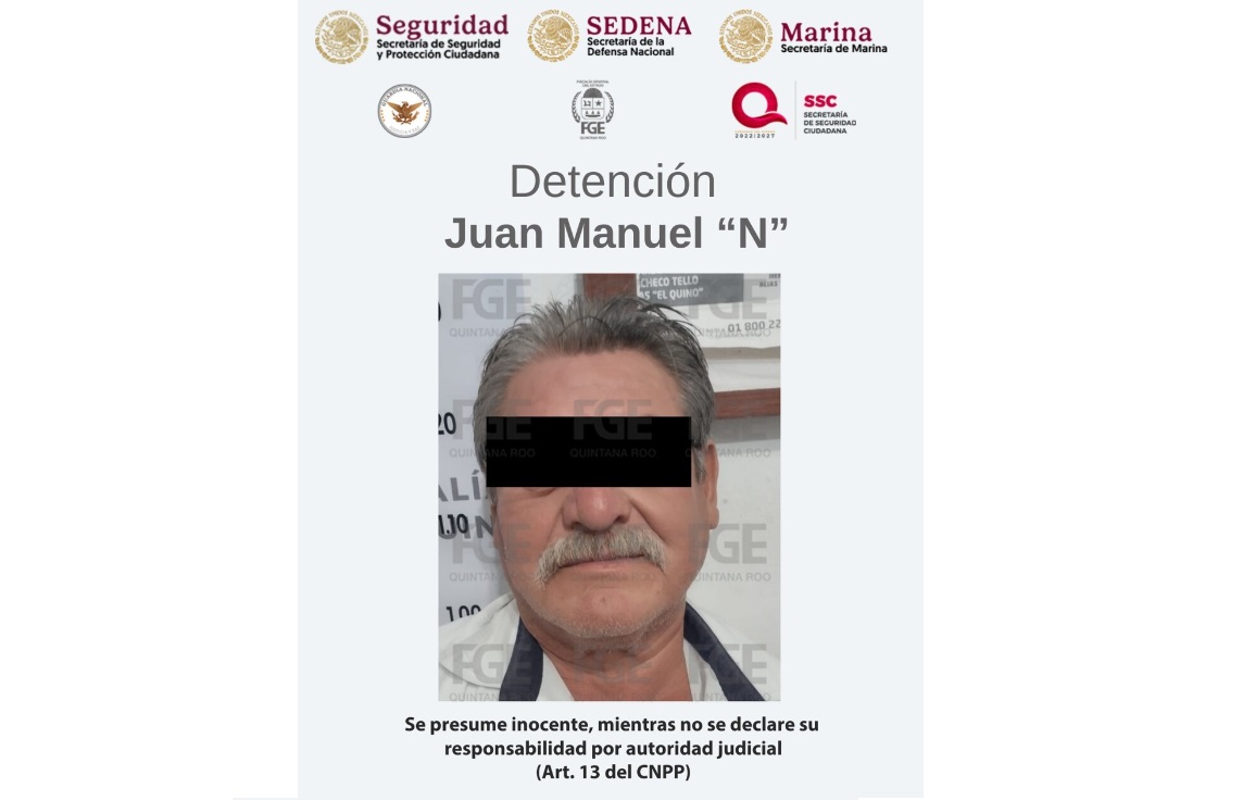 Elementos de la Policía de Investigación adscritos a la Fiscalía Especializada en Homicidios, cumplimentaron una orden de aprehensión en contra de Juan Manuel N. en calles de la supermanzana 21 de Cancún. Él presuntamente está relacionado con el homicidio de dos hombres de oficio taxista, quienes fueron privados de la vida y sus cuerpos abandonados sobre el kilómetro 270 de la carretera Cancún-Kantunilkín.