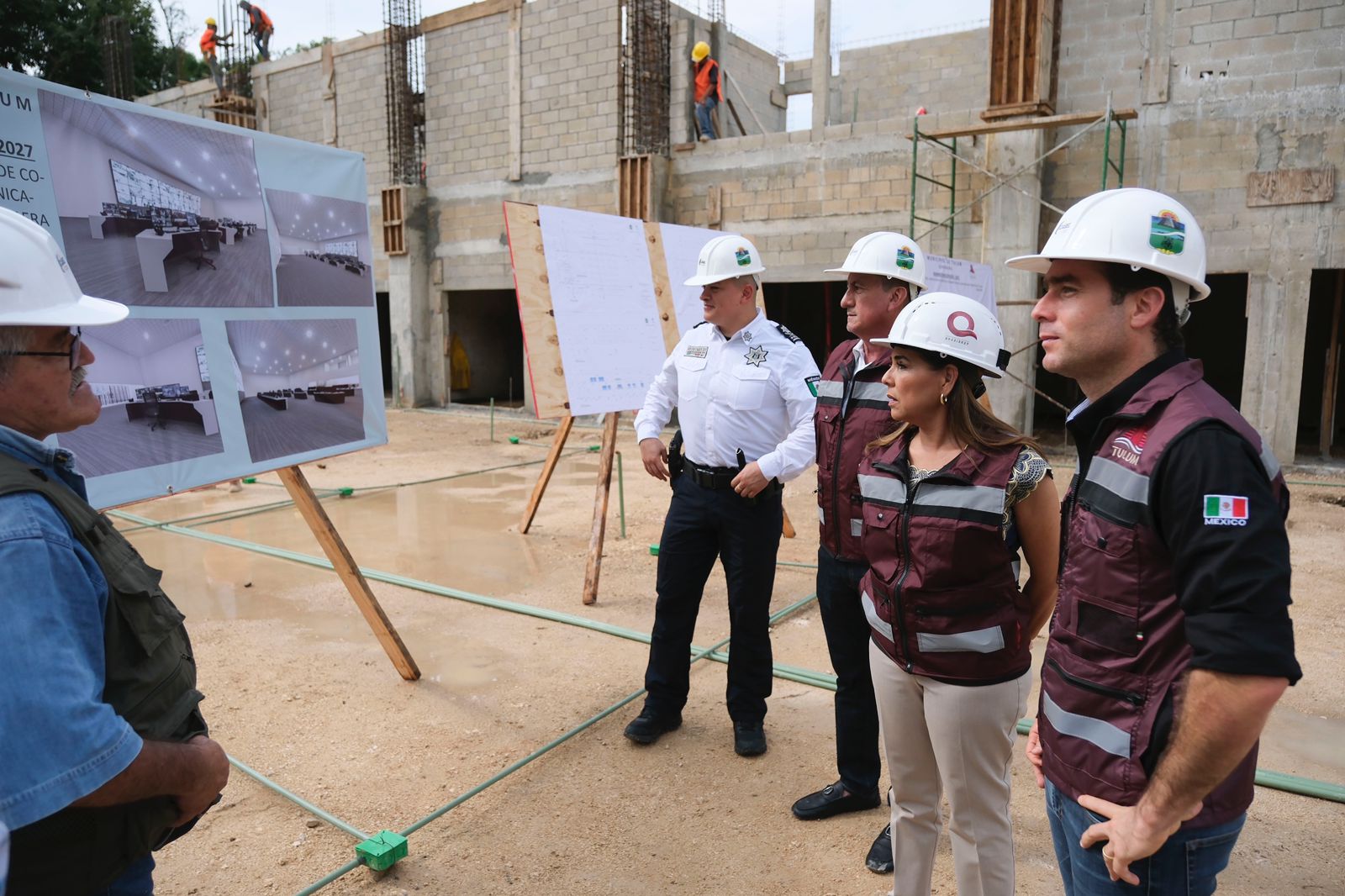 Durante un recorrido por el predio donde se construye el nuevo edificio del C2 de Tulum, la gobernadora Mara Lezama Espinosa supervisó el avance del 48 por ciento de la obra en la que se invierten más de 28 millones de pesos, entre recursos que transfiere la federación al municipio y propios.
