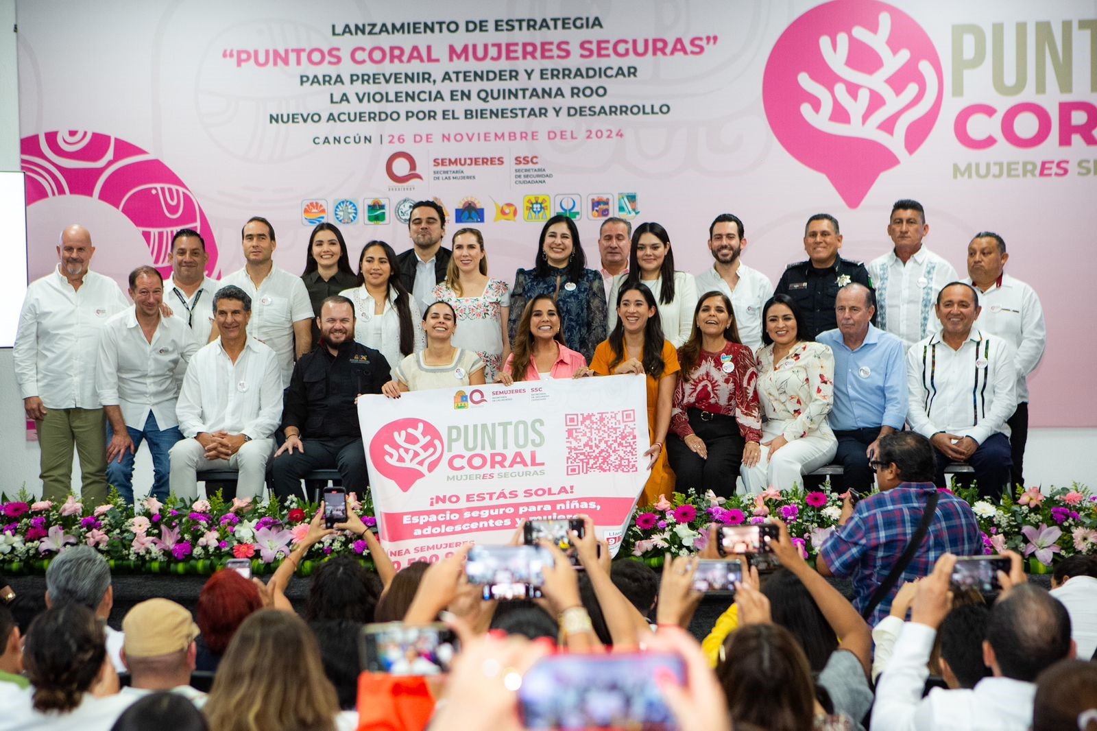 La gobernadora Mara Lezama Espinosa lanzó el martes 26 de noviembre la estrategia Puntos Coral-Mujeres Seguras, que consiste en 581 puntos de atención, orientación y canalización de mujeres en situación de violencia a lo largo del estado. El objetivo es prevenir, atender y erradicar la violencia contra las mujeres en todo Quintana Roo.