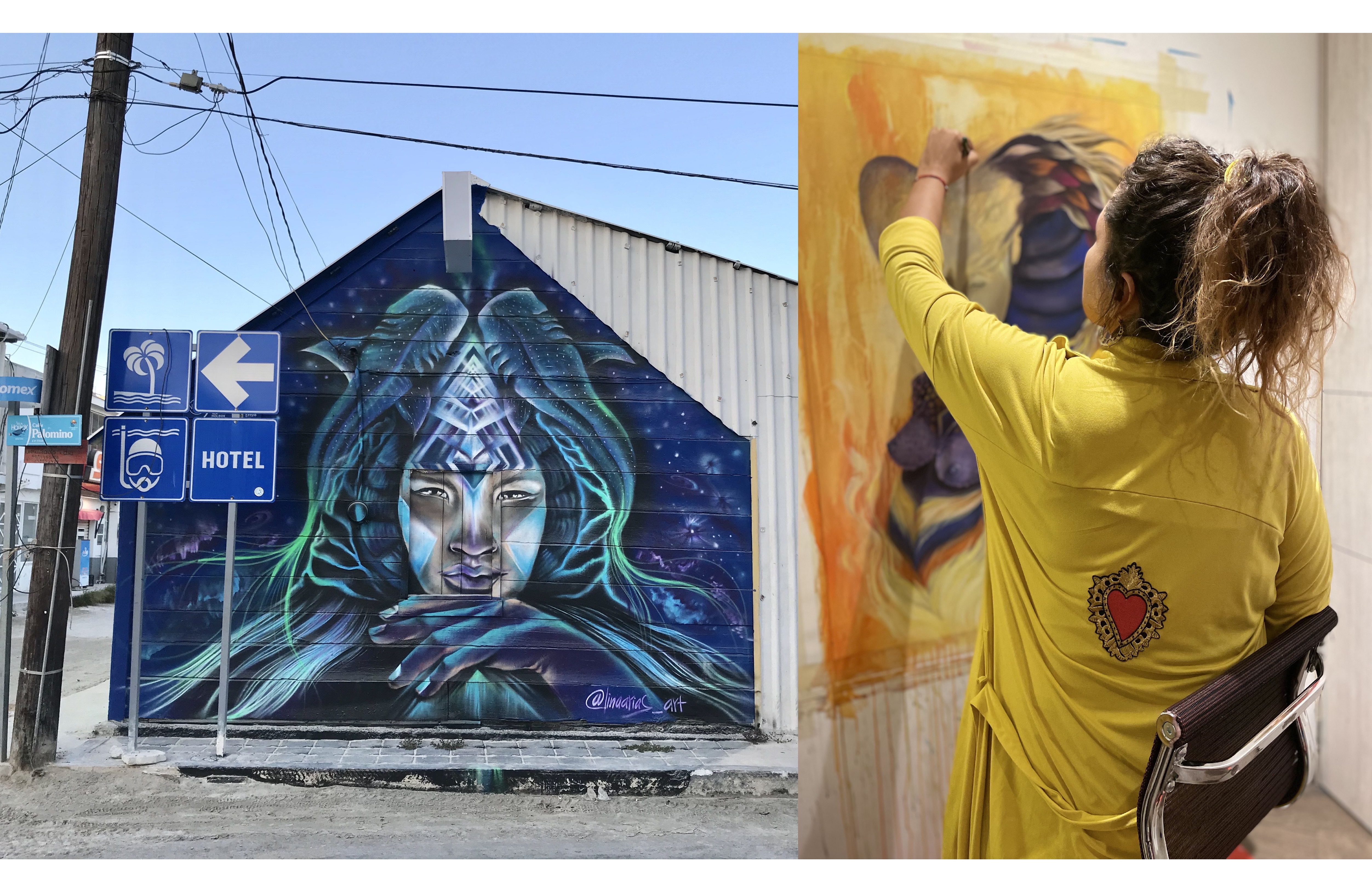 Con más de 15 años de trayectoria, Lina Arias es una destacada artista visual conocida por sus imponentes murales y su conexión profunda con la naturaleza y las culturas del mundo.