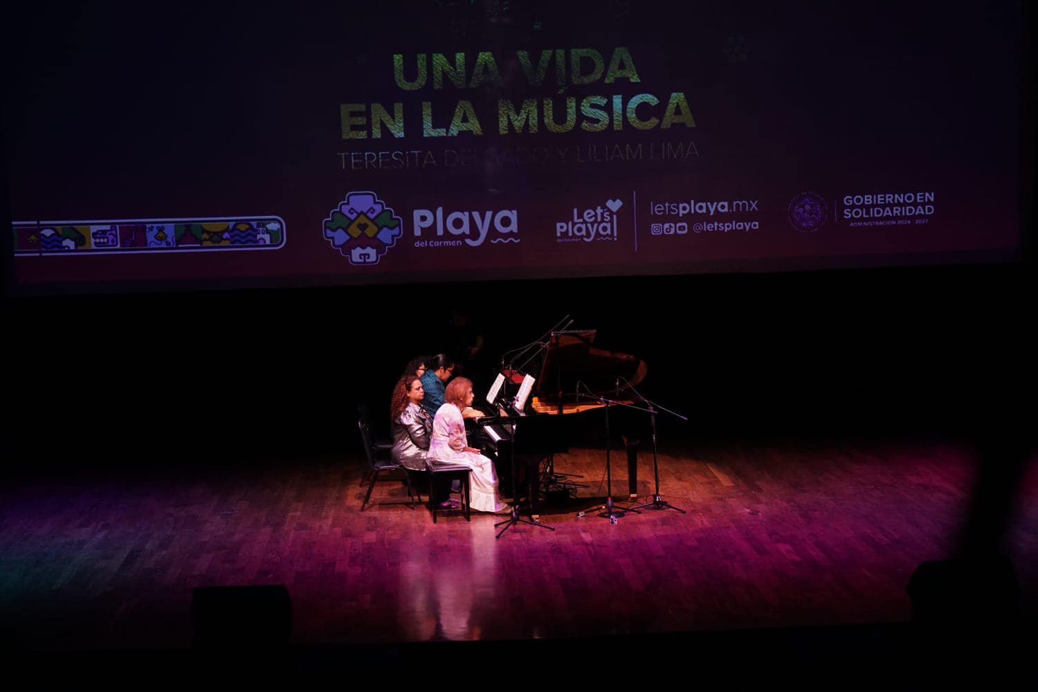 “Una vida en la música” se llamó el concierto a dos pianos ofrecido por la maestra Teresita Delgado, acompañada de la también maestra Liliam Lima, la noche del 27 de diciembre en el Teatro de la Ciudad, Xaman Há, de Playa del Carmen, que se vistió de gala para la esperada velada, que forma parte de la cartelera de la Navidad Mágica en Solidaridad.