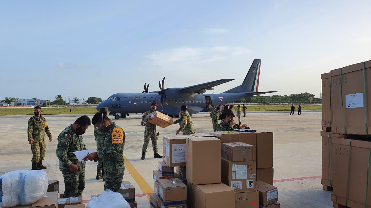 En vuelo procedente de la Ciudad de México, aterrizó en el Aeropuerto Internacional de Chetumal una aeronave tipo “Casa” C-295 de la Fuerza Aérea Mexicana, transportando tres toneladas de insumos, medicamentos, equipo de protección personal, así como 20 ventiladores hospitalarios.