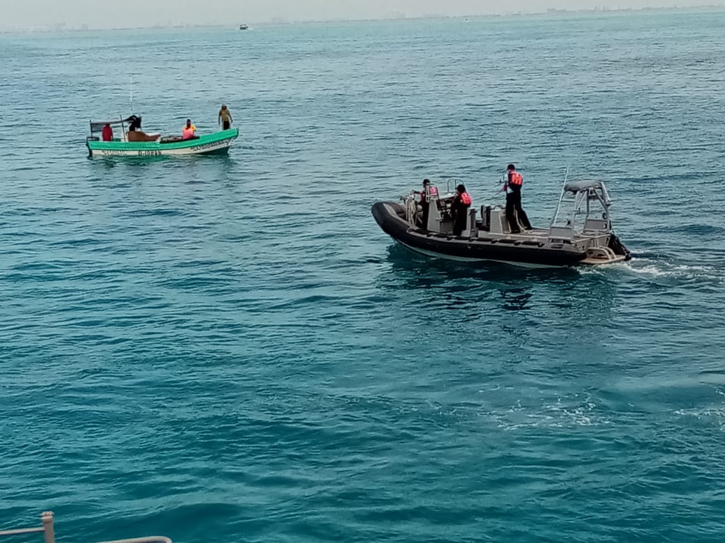 Derivado de lo anterior, se ordenó el zarpe inmediato de una embarcación tipo Defender de la Estación Naval de Búsqueda, Rescate y Vigilancia Marítima de Isla Mujeres, la cual localizó a la citada embarcación con todos sus tripulantes a bordo, para posteriormente remolcarla hacia el muelle del mando naval.