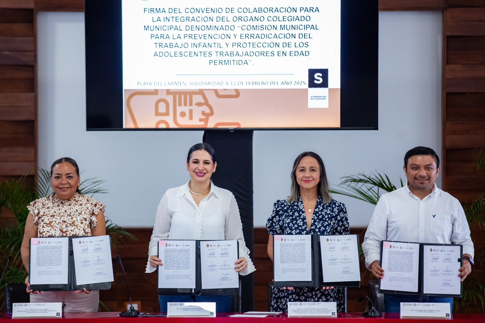 La presidenta municipal de Solidaridad, Estefanía Mercado, firmó el convenio para la integración de la Comisión Municipal para la Prevención y Erradicación del Trabajo Infantil y Protección de los Adolescentes Trabajadores en Edad Permitida, reinstaló el Sistema Municipal de Protección de Niñas, Niños y Adolescentes (Sipinna) y tomó protesta a sus integrantes.
