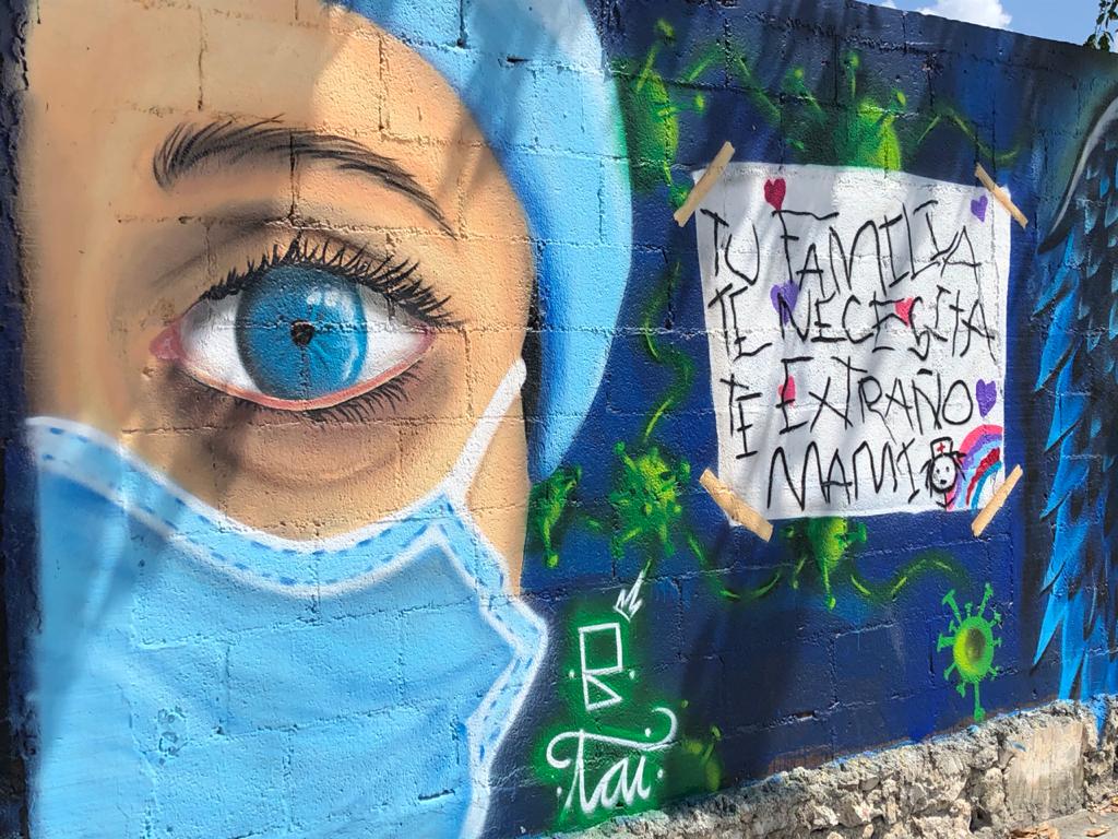 Una barda de una primaria se convirtió en el espacio en el que cinco artistas urbanos realizaron un homenaje a héroes que lucharon y entregaron sus vidas durante esta pandemia. El colectivo X la Pinta buscó la forma de concientizar a la población sobre este tema; así surge esta idea de plasmar un mural para incentivar el respeto al sector salud que día a día lucha contra el COVID-19.