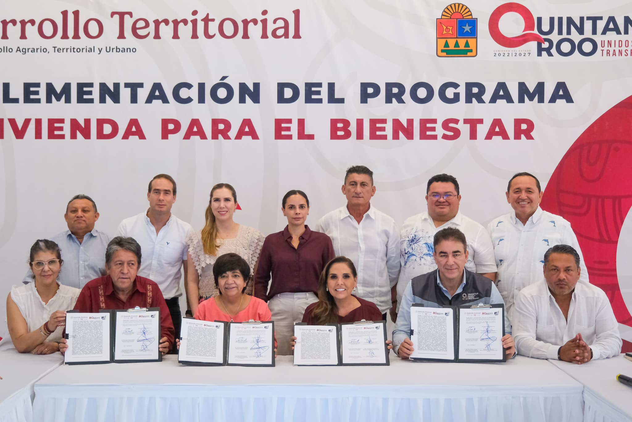 La gobernadora Mara Lezama Espinosa y la secretaria de la Sedatu, Edna Elena Vega Rangel, firmaron la implementación del Programa de Vivienda para el Bienestar en Quintana Roo, que tiene una meta para este año de 2 mil 600 viviendas en la entidad.