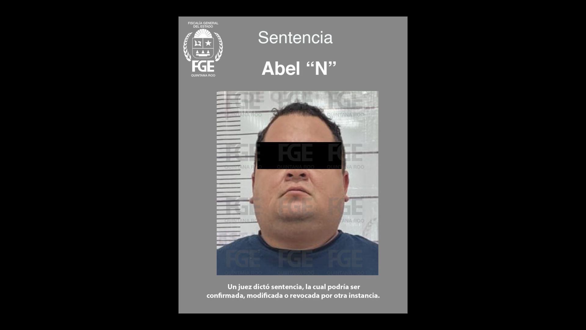 La Fiscalía General del Estado (FGE) de Quintana Roo dio a conocer que, tras aportar todas las evidencias correspondientes, obtuvo en audiencia de individualización de la pena, sentencia condenatoria de 16 años, ocho meses y 20 días de prisión, para Abel N. por el delito de feminicidio en agravio de una víctima de identidad reservada.