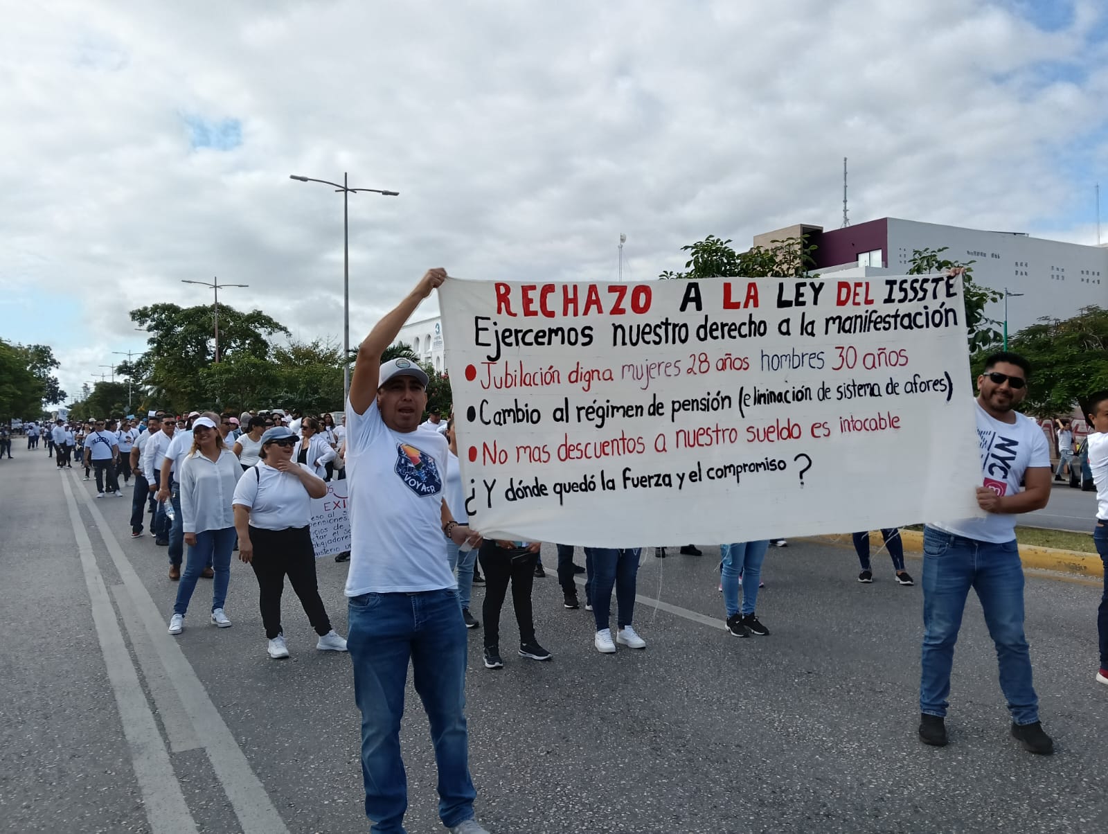 Por estar inconformes con la reforma al ISSSTE, miles de maestros de todos los niveles educativos de Quintana Roo se manifestaron la mañana de este sábado 22 de febrero en lugares como Chetumal, Playa del Carmen y Cancún.