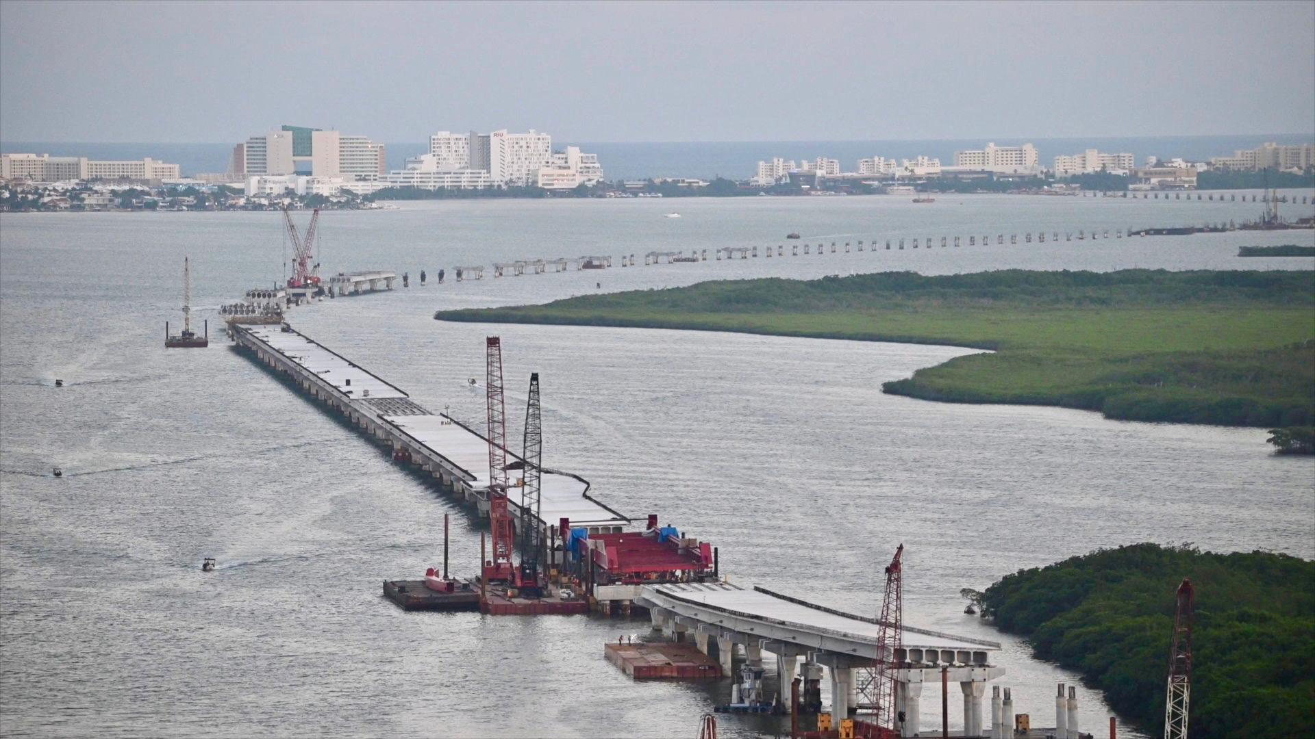 Puente vehicular Nichupté lleva 74.60 por ciento de avance