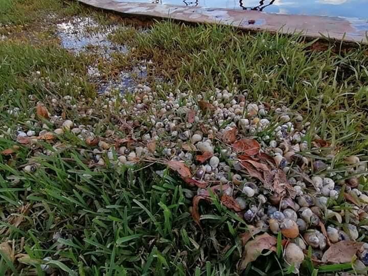 Este fin de semana, un fenómeno de mortalidad masiva de caracoles chivita fue detectado en la Laguna de Bacalar. Activistas advierten que este hecho puede ser un indicio de la presencia de sustancias que están siendo absorbidas por la Pomacea Flagellata a partir de los escurrimientos que causaron las lluvias provocadas por la tormenta tropical Cristóbal, pero aún no existen estudios al respecto.
