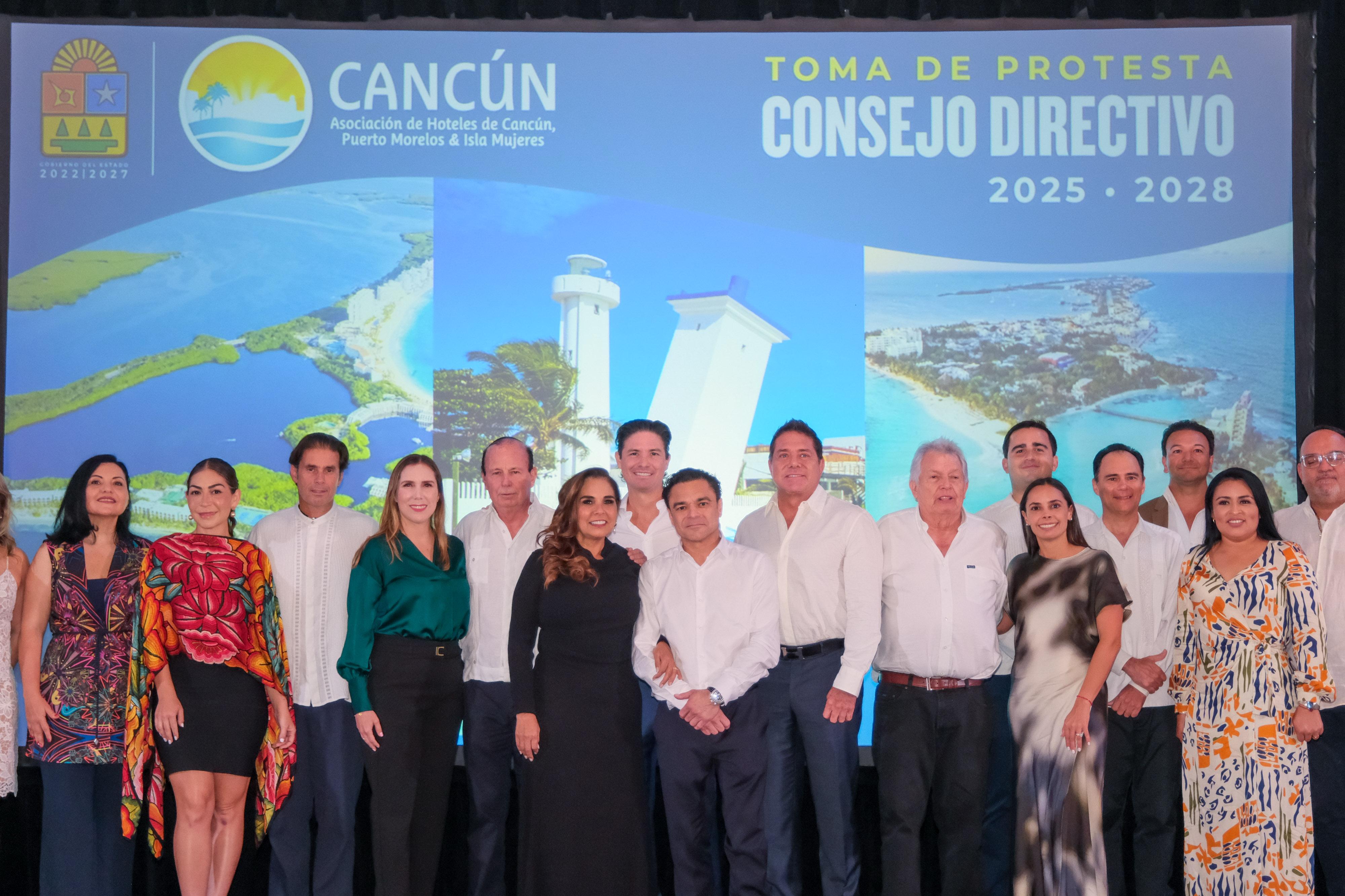 La gobernadora Mara Lezama Espinosa encabezó la ceremonia de toma de protesta del Consejo Directivo de la Asociación de Hoteles de Cancún, Puerto Morelos e Isla Mujeres 2025-2028, que dirigirá Rodrigo de la Peña Segura.