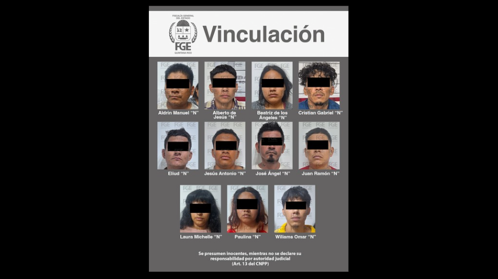 La Fiscalía General del Estado (FGE) de Quintana Roo consiguió del órgano jurisdiccional la vinculación a proceso de 11 personas, ocho del sexo masculino y tres del femenino, por hechos posiblemente constitutivos del delito de homicidio calificado en agravio de una víctima de identidad reservada.