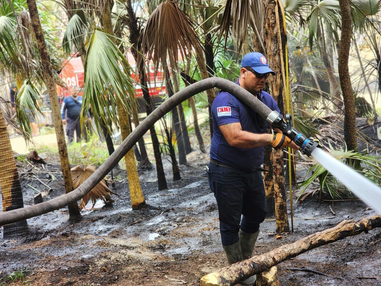 Explicó que además de la vegetación se quemaron dos palapas del Centro de Visitantes de Sian Ka’an. Precisó que se hicieron entre mil 200 y mil 500 metros lineales de guardarraya y se procedió a enfriar la mayoría de las brechas con mangueras a través de los camiones de Bomberos.