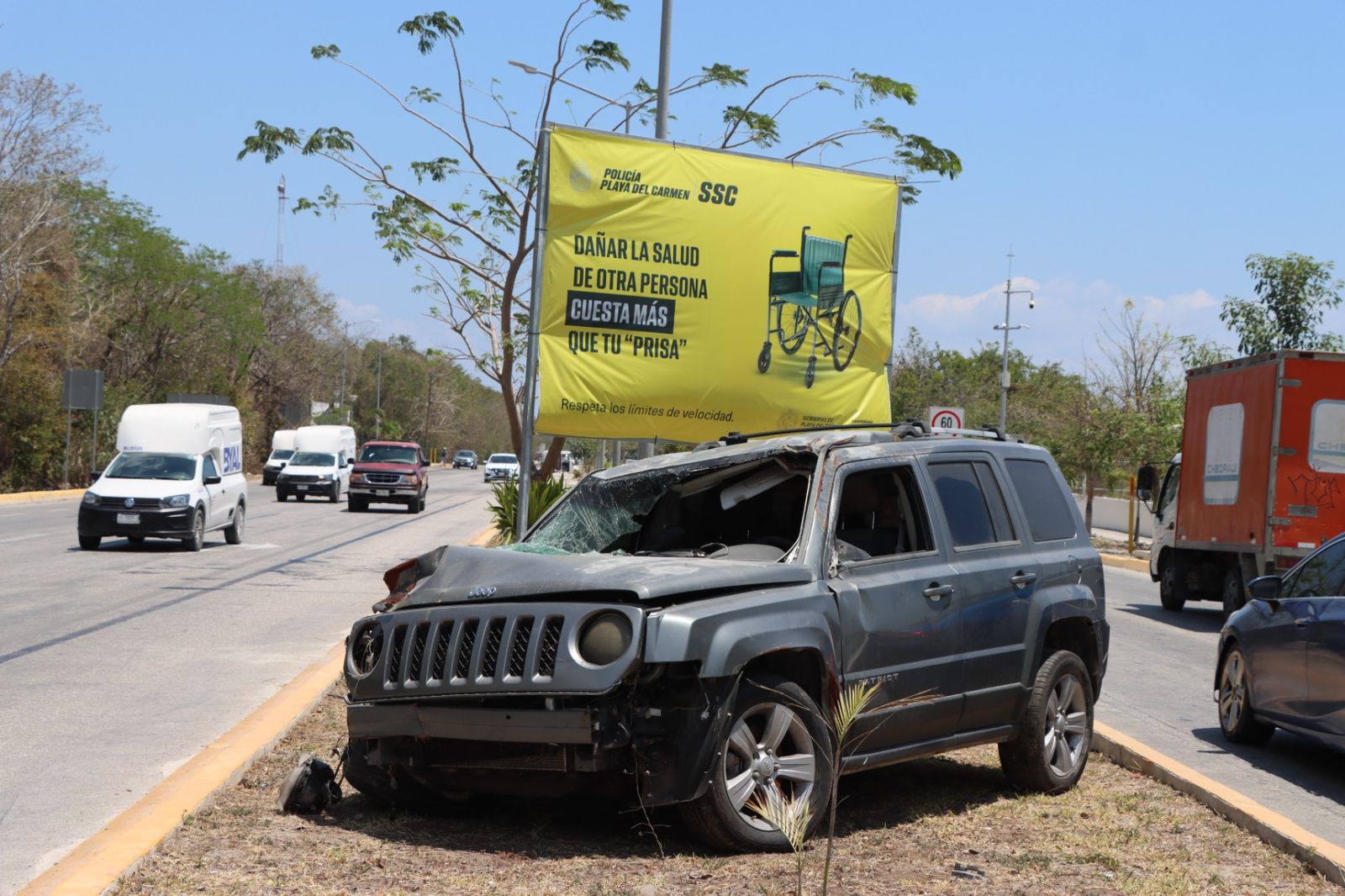 La estrategia ejecutada por la Secretaría de Seguridad Ciudadana Municipal incluye acciones de alto impacto visual, como la colocación de anuncios espectaculares con mensajes de concientización y vehículos reales involucrados en accidentes, ubicados en accesos principales y puntos turísticos estratégicos.