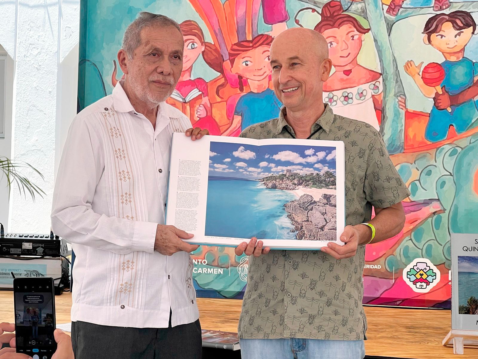 Reinhard destacó que este proyecto no habría sido lo mismo sin el respaldo de figuras emblemáticas de la cultura local, como el maestro Ramón Iván Suárez Caamal, autor del Himno de Quintana Roo, quien estuvo durante la presentación del libro y su presencia añadió un valor simbólico al evento, fortaleciendo el vínculo entre el arte visual y la identidad quintanarroense.