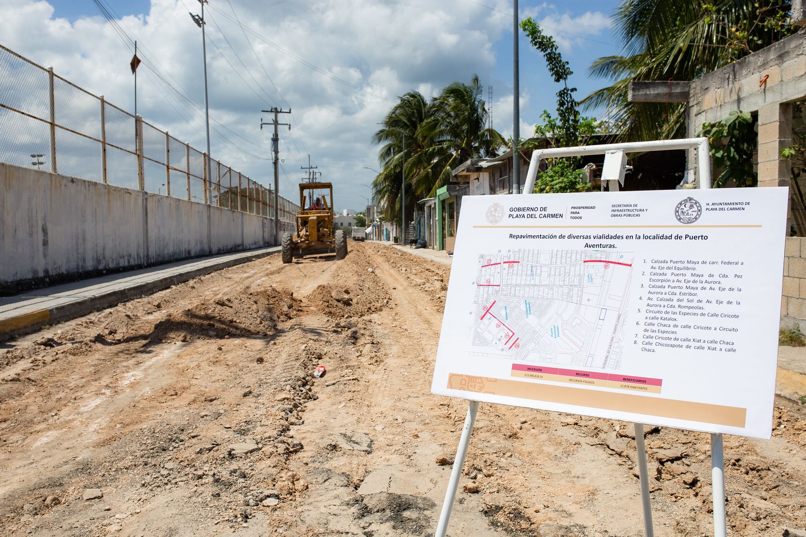 Las calles que serán intervenidas se localizan en puntos estratégicos de Puerto Aventuras, Quintana Roo, e incluyen la calzada Puerto Maya (en diversos tramos), avenida Calzada del Sol, Circuito de las Especies, calle Chaca, calle Ciricote, calle Chicozapote y calle Xiat. Estas obras beneficiarán directamente a 22 mil 878 habitantes, impactando de forma positiva en su movilidad cotidiana y fortaleciendo el tejido social a través de vialidades dignas, funcionales y seguras.