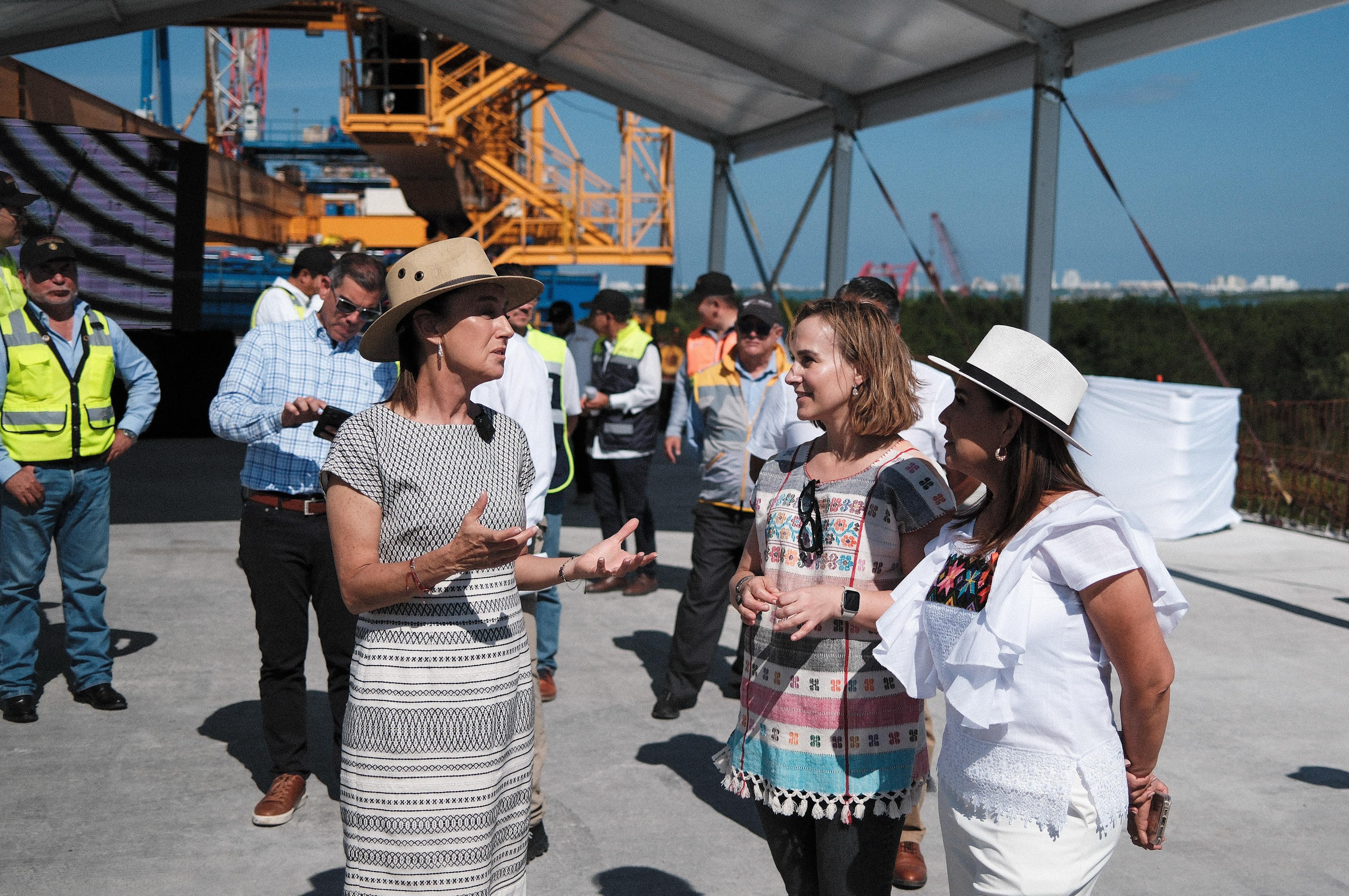 Acompañada de la gobernadora Mara Lezama Espinosa y de Guadalupe Phillips, de la empresa ICA, la presidenta de México, Claudia Sheinbaum, supervisó los avances que presenta actualmente la construcción del puente vehicular Nichupté, como parte de una gira de trabajo que inició en Cancún el viernes 25 de abril.