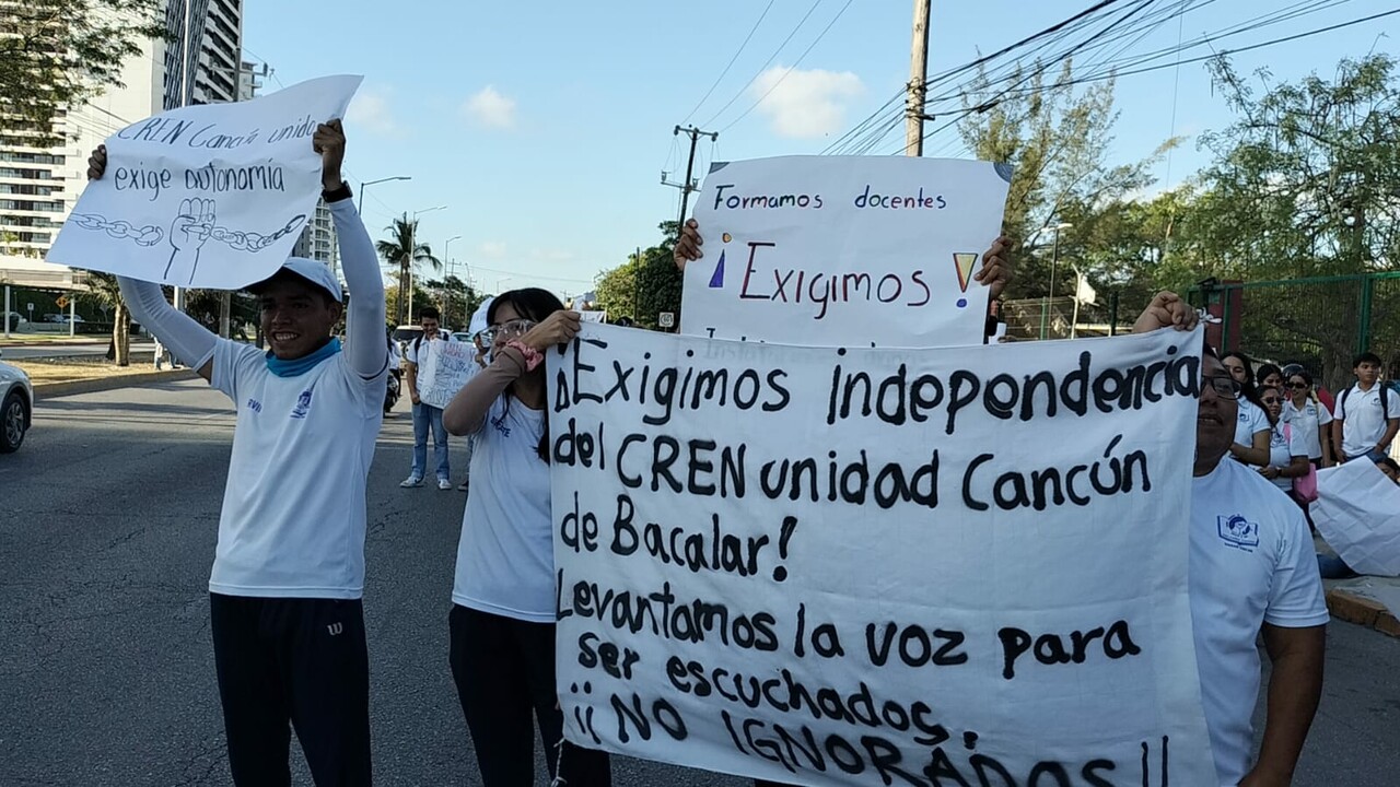 La mañana de este viernes alrededor de 400 jóvenes, estudiantes del Centro Regional de Educación Normal (CREN), unidad Cancún, se manifestaron frente a las instalaciones de la Secretaría de Educación de Quintana Roo (SEQ) para exigir la separación de la escuela que oficialmente está en Bacalar y puedan hacer sus trámites en su municipio, entre otras demandas.