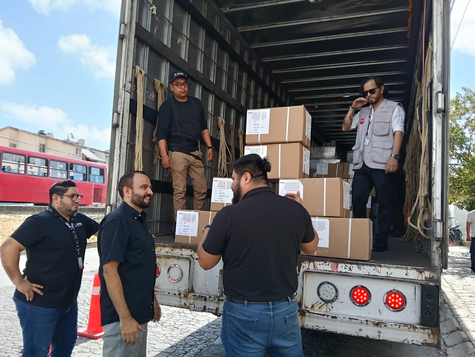 Más de 2 millones de boletas electorales llegaron custodiadas por fuerzas federales en paquete electoral a la Junta Distrital 04 del Instituto Nacional Electoral (INE) ubicada en Cancún.