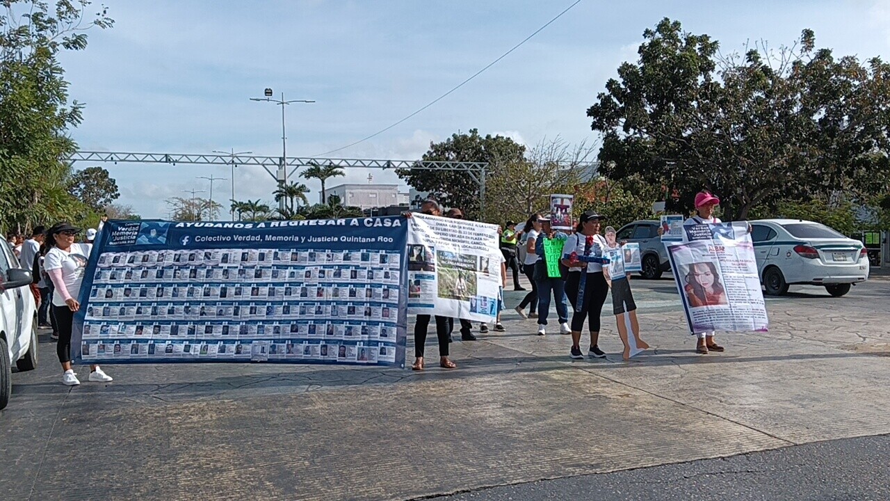 Convocada por el colectivo Verdad, Memoria y Justicia de Personas Desaparecidas en el Estado de Quintana Roo, la movilización partió desde el palacio municipal de Benito Juárez y concluyó en el crucero, uno de los puntos más concurridos de la ciudad.