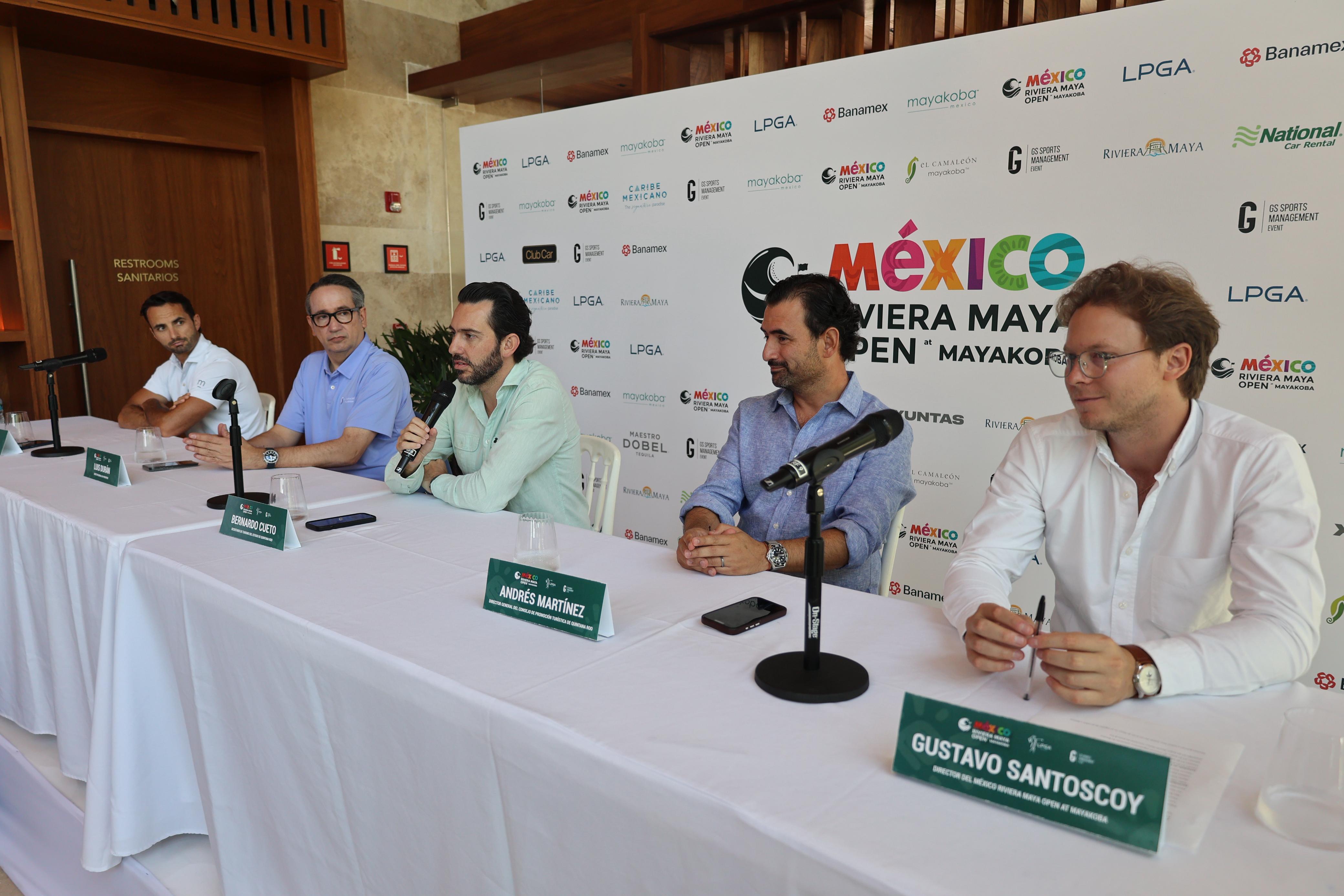 En la conferencia de prensa asistieron, Andrés Martínez director del Consejo de Promoción Turística de Quintana Roo; Gustavo Santoscoy director del México Riviera Maya Open at Mayakoba; David López director general del Camaleón; Luis Durán director general RLH Properties.