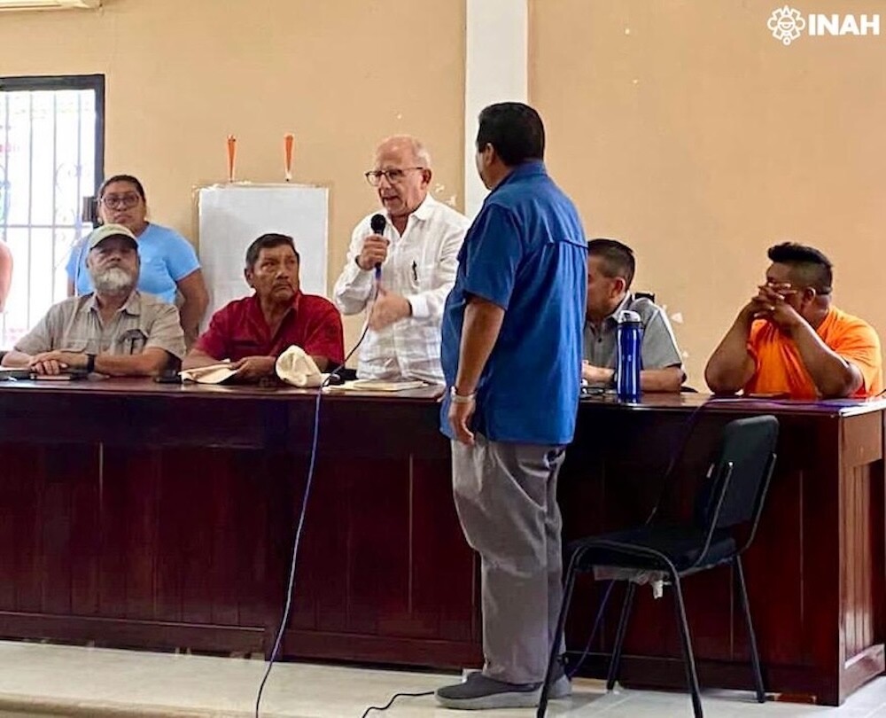 En sesión de asamblea del Ejido Ruinas de Cobá, presidida por el comisario ejidal José Waldemar Cen, y con la presencia del director general del Instituto Nacional de Antropología e Historia (INAH), Diego Prieto Hernández, se alcanzó un importante acuerdo para continuar la construcción de las obras de infraestructura en la zona arqueológica, ubicada al norte de Quintana Roo.