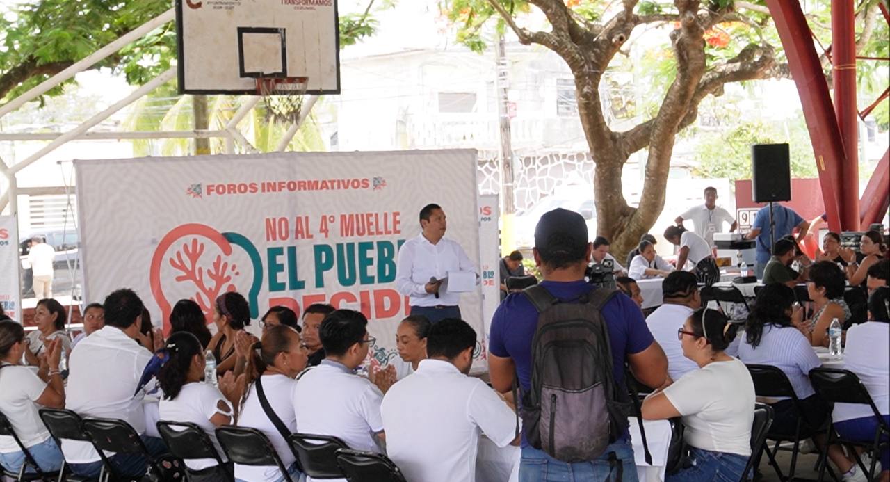 Con la participación de cientos de personas, se realizó el Primer Foro Informativo “El Pueblo Decide”, donde habitantes de Cozumel, organizaciones y colectivos formalizaron una ruta jurídica y ciudadana para solicitar la cancelación del proyecto “Cuarto Muelle”. El expediente colectivo será entregado a la Secretaría de Medio Ambiente y Recursos Naturales (Semarnat) como parte de la revisión oficial iniciada el pasado 19 de junio.