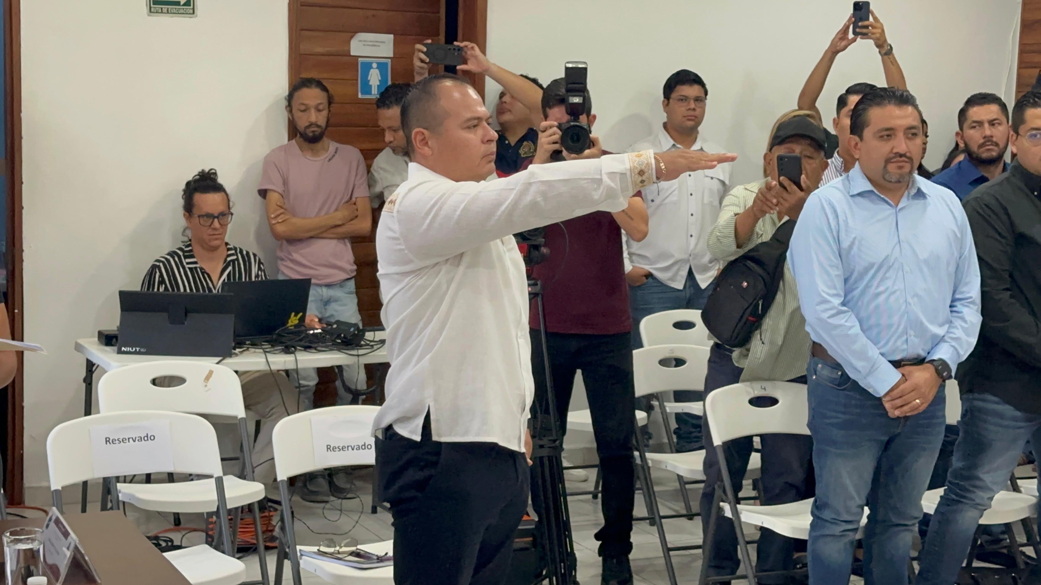 En el marco de la 19 Sesión del Cabildo, celebrada la mañana de este miércoles 2 de julio, el presidente municipal Diego Castañón Trejo encabezó la toma de protesta de Edgar Aguilar Rico como nuevo titular de la Secretaría de Seguridad Pública y Protección Ciudadana de Tulum.